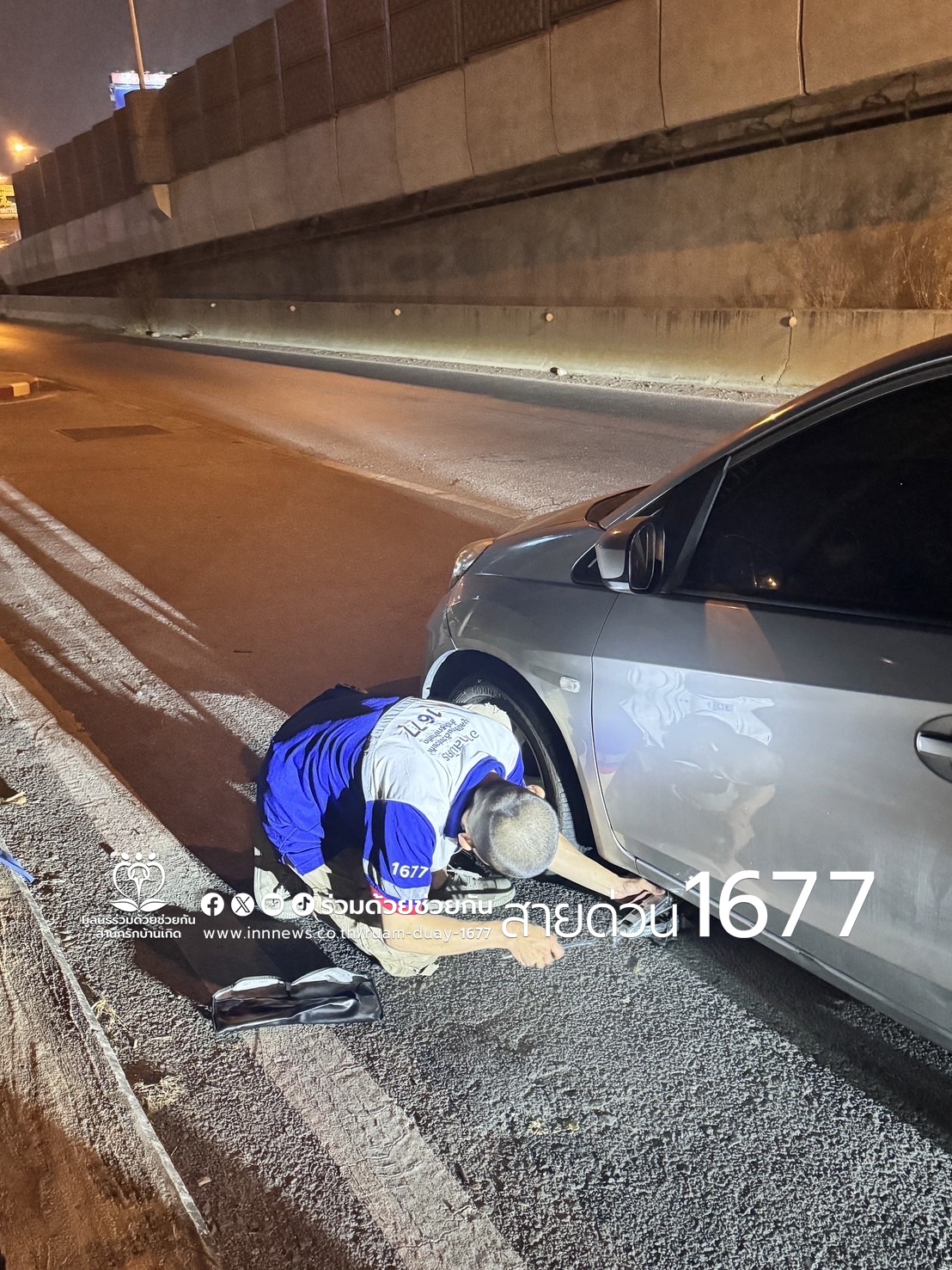 ประชาชนรถยางแตกกลางทาง อาสาร่วมด้วยช่วยเปลี่ยนยางให้ เดินทางต่อไปได้ตามปกติ