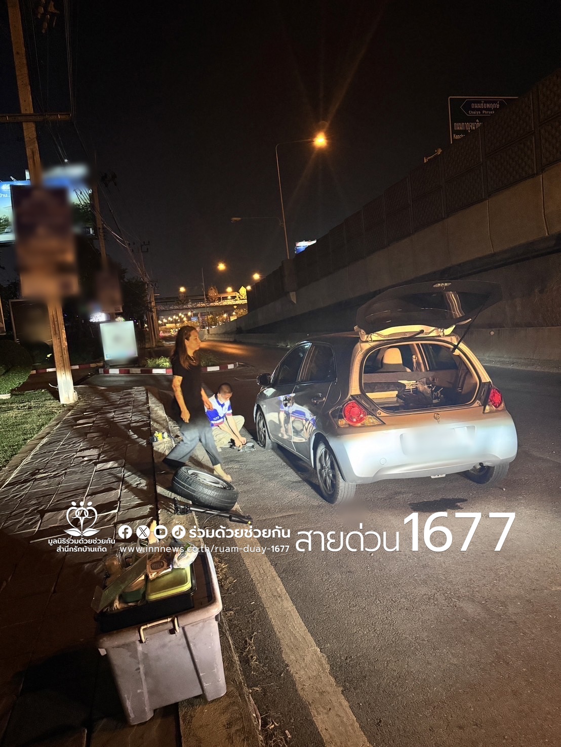 อาสาช่วยประชาชนรถยางแตกกลางทาง ถนนราชพฤกษ์