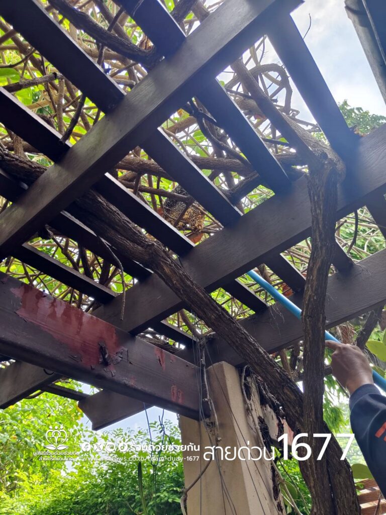 คุณสุจิตรา ขอความช่วยเหลือกำจัดรังผึ้งบนต้นไม้ บริเวณซอยสุขุมวิท 49/8 แขวงคลองตันเหนือ เขตวัฒนา กรุงเทพฯ ตรวจสอบ พบผึ้งทำรังบนต้นไม้ความสูง 3 เมตร อาสาร่วมด้วยฯ ดำเนินการใช้อุปกรณ์กำจัดรังผึ้งได้สำเร็จ