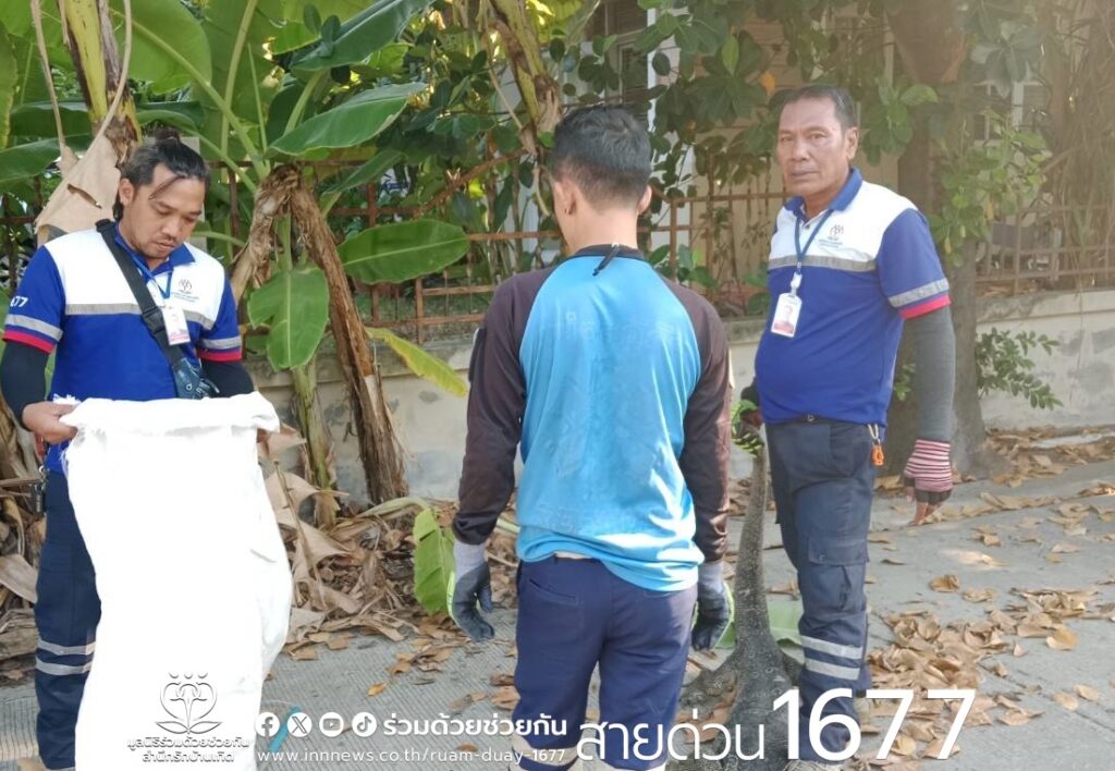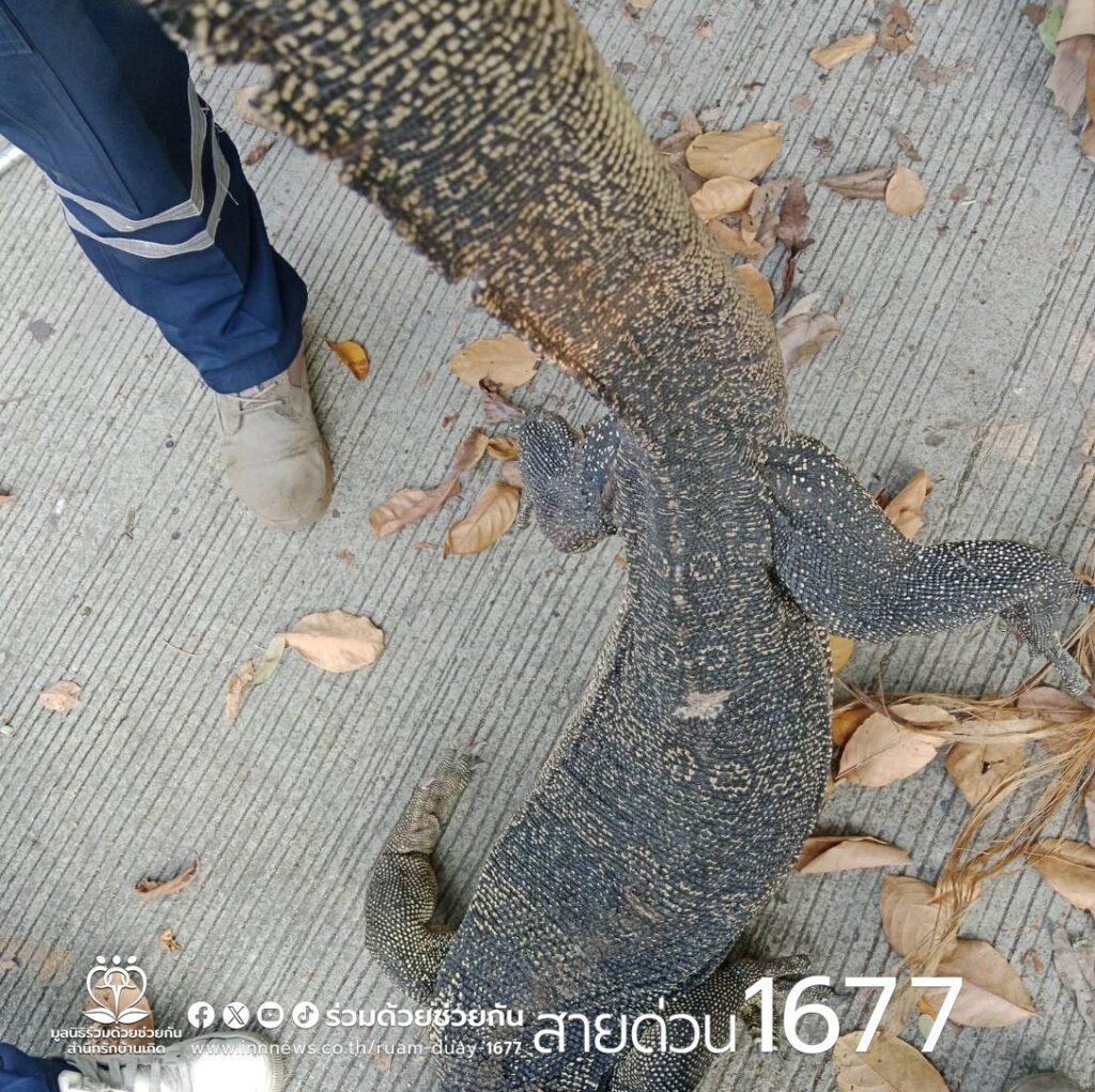 ศูนย์สื่อสารร่วมด้วยช่วยกัน ประสานอาสาร่วมด้วยคุ้มภัย 006,032,318 เข้าตรวจสอบ พบเป็นตัวเงินตัวทองจำนวน 1 ตัว ความยาวประมาณ 2 เมตร หลบอยู่ข้างกำแพงรั้วหน้าหมู่บ้าน จึงได้ใช้อุปกรณ์เข้าช่วยเหลือ ทำการจับตัวเอาไว้ได้เป็นผลสำเร็จ และนำไปปล่อยคืนสู่ธรรมชาติเป็นที่เรียบร้อย