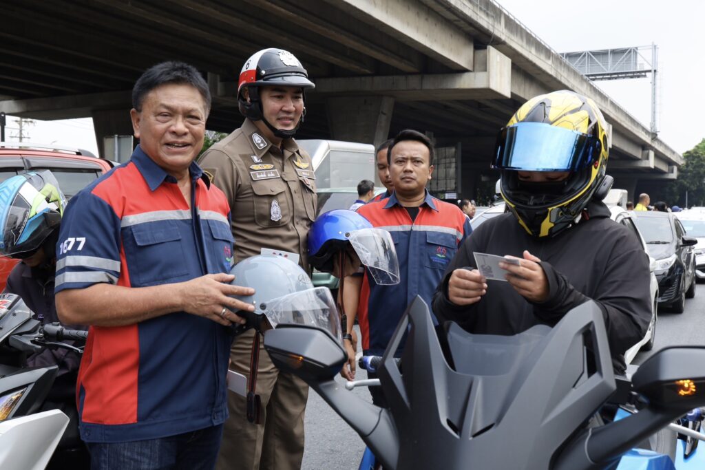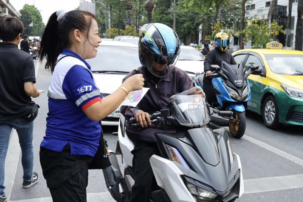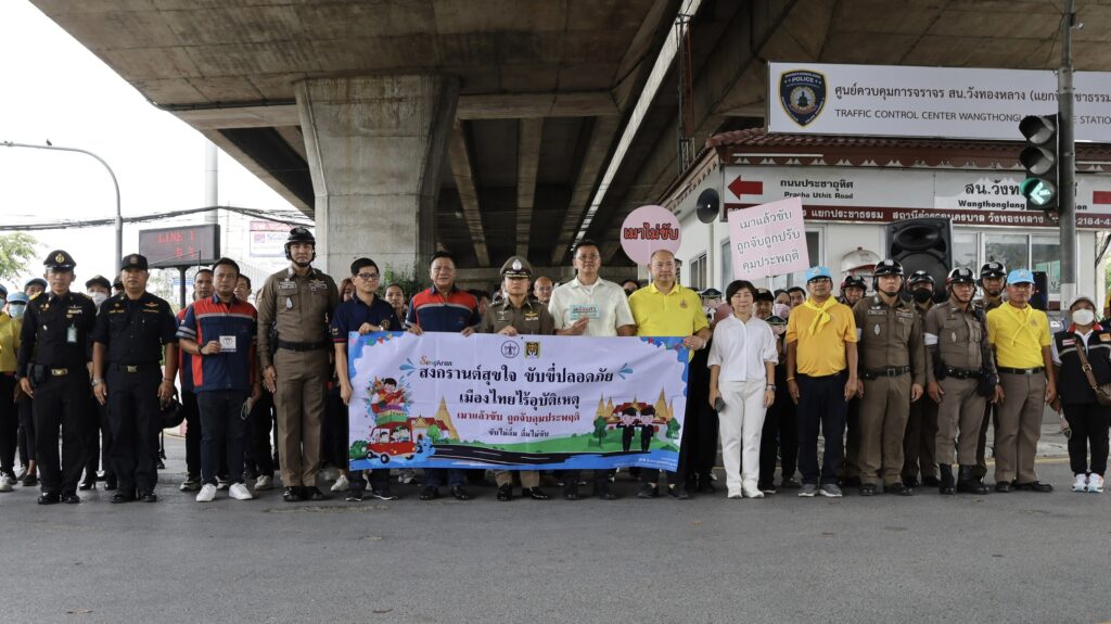 องค์กรภาคีเครือข่ายทั้งภาครัฐและเอกชน ร่วมกันจัดกิจกรรมรณรงค์ป้องกันและลดอุบัติเหตุจากการขับขี่ เพื่อความปลอดภัยช่วงเทศกาลสงกรานต์ 2567 ณ แยกประชาธรรม