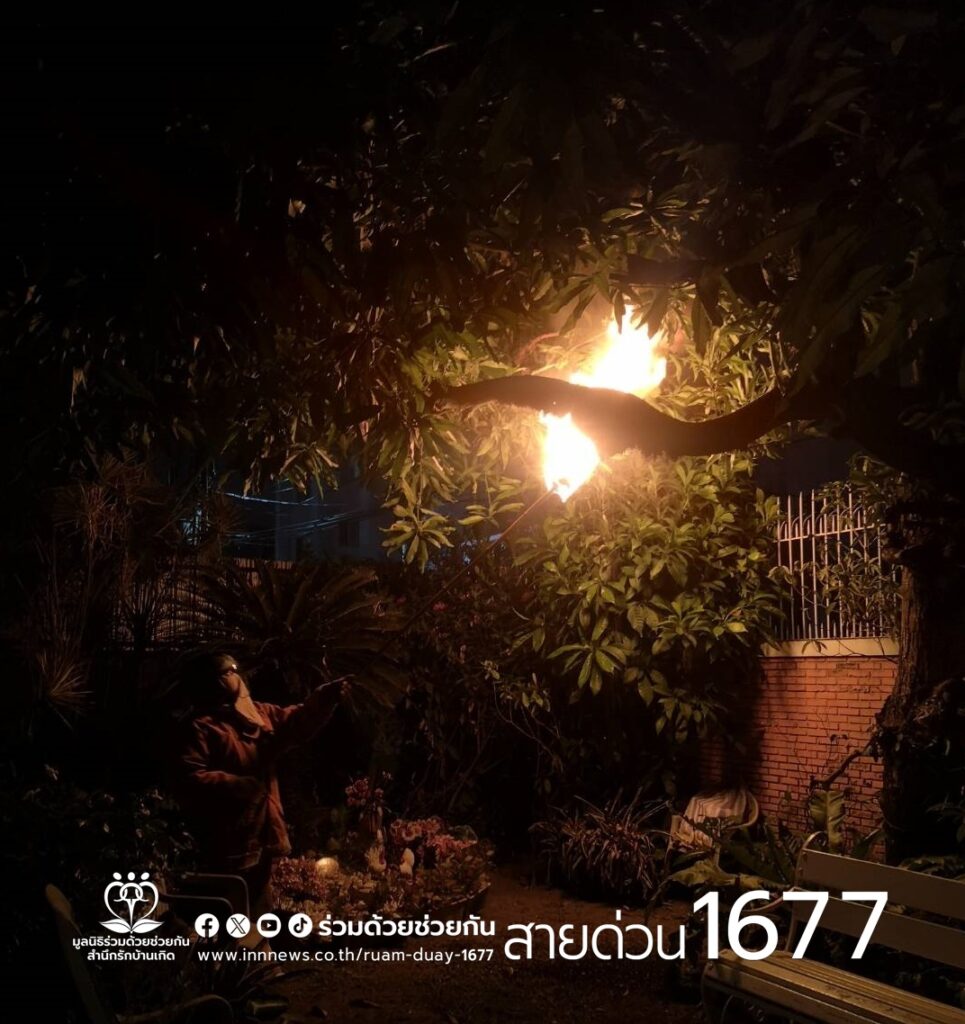 คุณชนิดา แจ้งผ่านสายด่วน 1677 ขอความช่วยเหลือให้ช่วยกำจัดรังผึ้ง อยู่บนต้นไม้ใกล้บ้านพัก ถ.ลาดพร้าว ซอย 97 แยก 4 แขวงคลองเจ้าคุณสิงห์ เขตวังทองหลาง กรุงเทพฯ เกรงว่าจะได้รับอันตราย