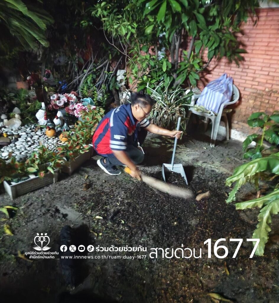 ศูนย์สื่อสารร่วมด้วยช่วยกัน ประสานอาสาร่วมด้วย 026,365 เข้าช่วยเหลือ พบเป็นรังผึ้งหลวงทำรังอยู่บนต้นมะม่วงความสูง 3 เมตร ใกล้เคียงที่พักอาศัย อาสาร่วมด้วยได้นำอุปกรณ์เข้าช่วยเหลือ ทำการกำจัดรมควัน และเคลื่อนย้ายนำออกนอกพื้นที่ให้เป็นที่เรียบร้อย เพื่อความปลอดภัยของประชาชนต่อไป