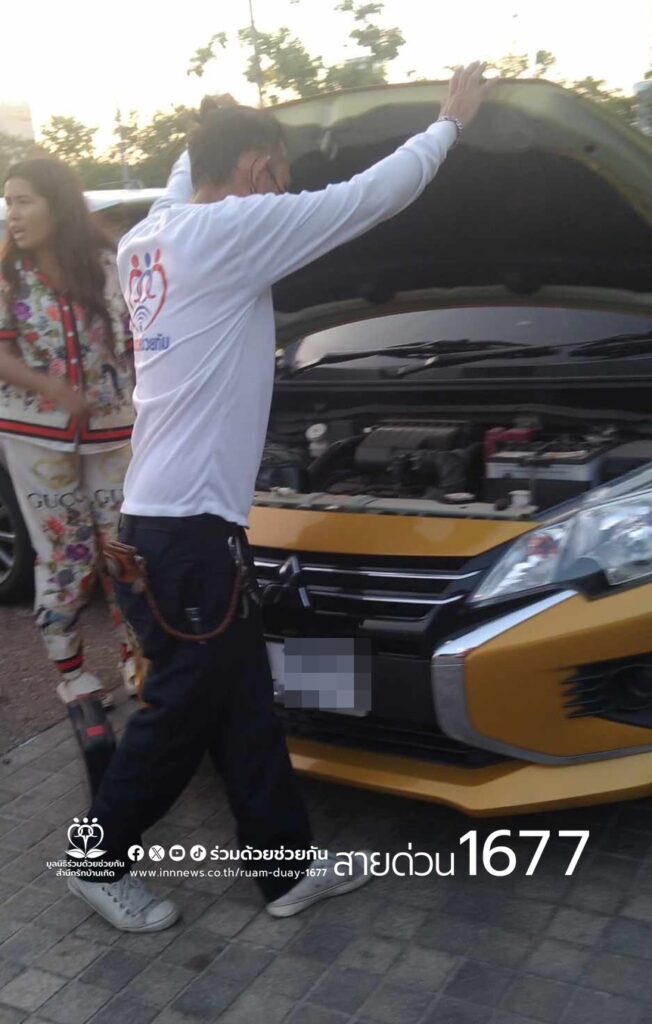 อาสาร่วมด้วยช่วยกัน รับแจ้งจากประชาชนขอความช่วยเหลือรถแบตหมด สตาร์ทไม่ติด เป็นรถยนต์มิตซูบิชิ สีน้ำตาล จอดอยู่ภายในตลาดนัด กกท. ถนนรามคำแหง แขวงหัวหมาก เขตบางกะปิ กรุงเทพฯ