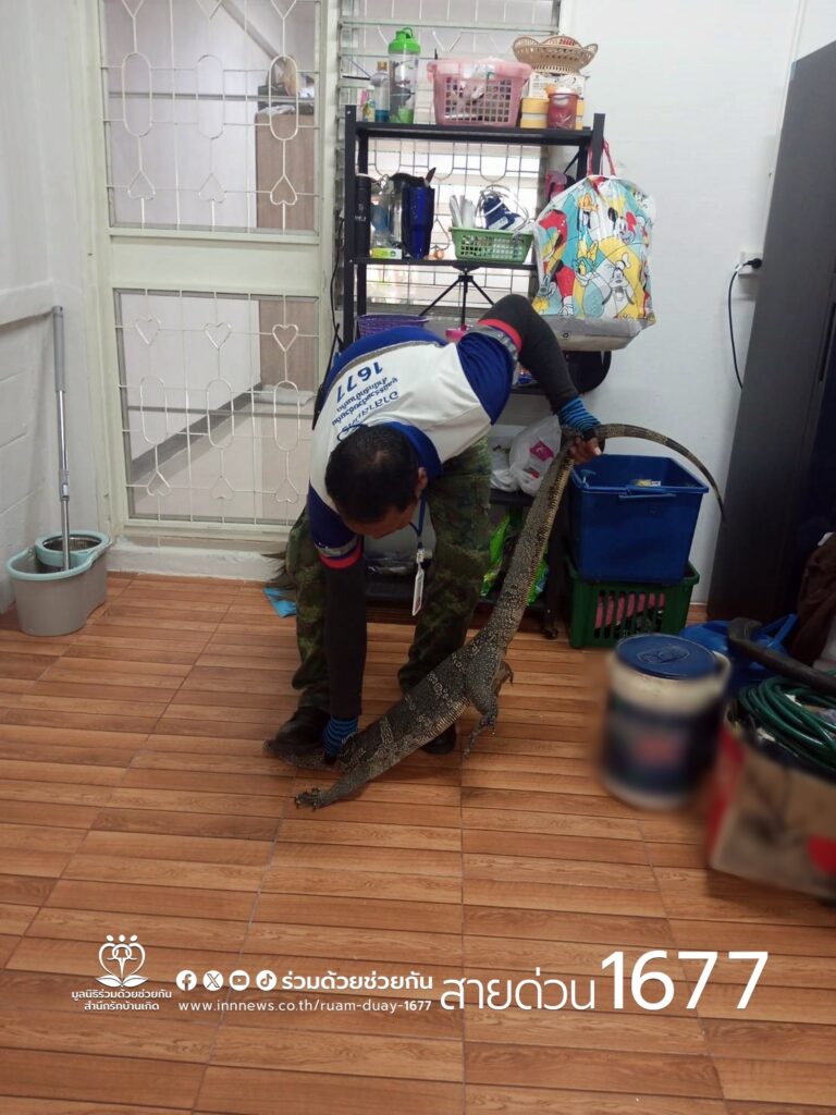 รับแจ้ง พบตัวเงินตัวทองเข้าห้องครัว ซอยพระยาสุเรนทร์ 18 อาสาฯช่วยจับปล่อยคืนธรรมชาติ