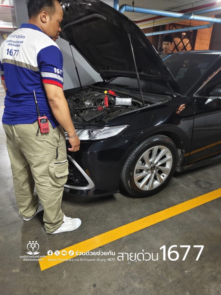 คุณภูธเนตร แจ้งผ่านสายด่วน 1677 ขอความช่วยเหลือ รถแบตหมด สตาร์ทไม่ติด เป็นรถยนต์โตโยต้า คัมรี่ สีดำ จอดอยู่ภายในซอยสุขุมวิท 24 เขตคลองเตย กรุงเทพฯ