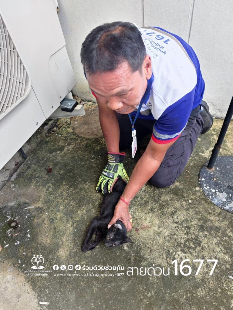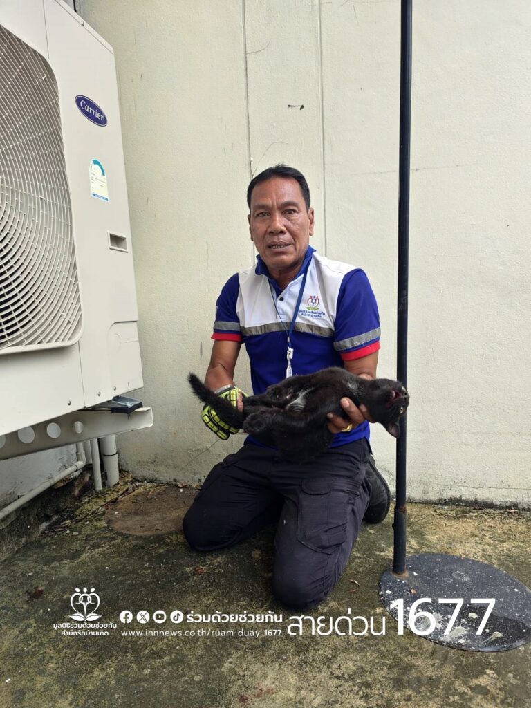อาสาร่วมด้วยคุ้มภัยคุ้มภัย 006 , 032 รับแจ้งจากประชาชนขอความช่วยเหลือแมวติดซอกใต้อาคาร บริเวณถนนพระยาสุเรนทร์ แขวงบางชัน เขตคลองสามวา กรุงเทพฯ ตรวจสอบ พบแมว สีดำ จำนวน 1 ตัว ติดซอกใต้อาคารขึ้นมาไม่ได้ อาสาร่วมด้วยฯ ดำเนินการช่วยเหลือแมวขึ้นมาได้สำเร็จ และปลอดภัย