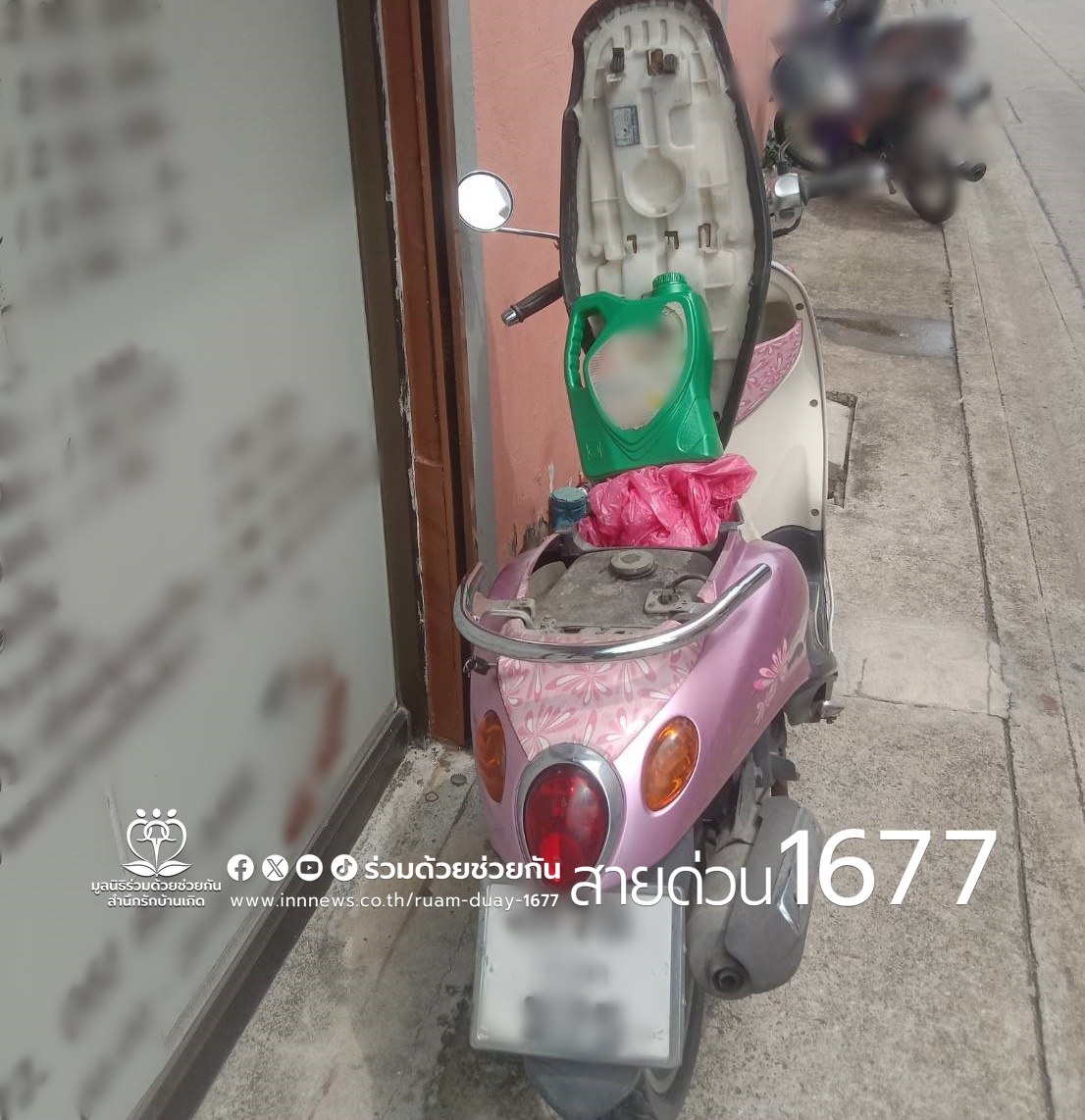 ตรวจสอบพบรถจักรยานยนต์ น้ำมันหมด สตาร์ทรถไม่ติด อาสาจึงช่วยนำน้ำมันเชื้อเพลิงมาเติมให้ สามารถเดินทางต่อไปได้ตามปกติ