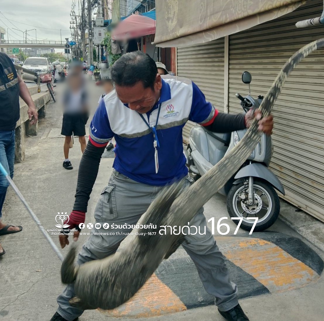 รับแจ้งจากประชาชนขอความช่วยเหลือ ตัวเงินตัวทองเข้าบ้าน ซอยเสรีไทย 13 แขวงคลองกุ่ม เขตบึงกุ่ม กรุงเทพฯ ซึ่งเปิดเป็นร้านขายของชำ ศูนย์สื่อสารร่วมด้วยช่วยกัน ประสาน อาสาร่วมด้วยฯ เข้าไปช่วยจับ