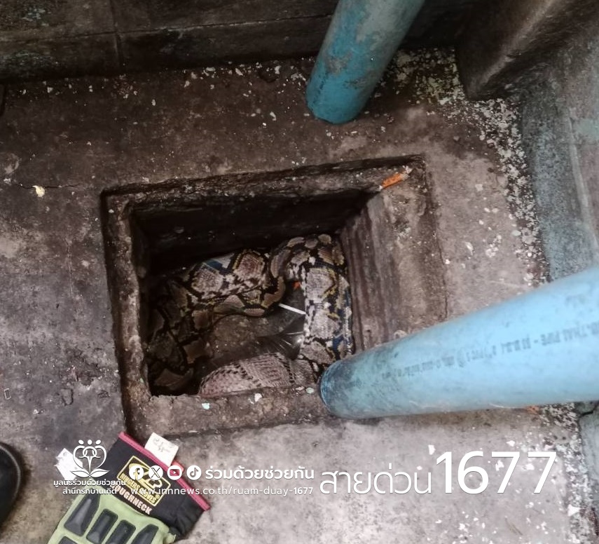 งูเหลือมสุดแสบ! ดอดเขมือบแมว ติดในท่อระบายน้ำ ซอยเสรีไทย 63 อาสาร่วมด้วยเร่งช่วยเหลือ