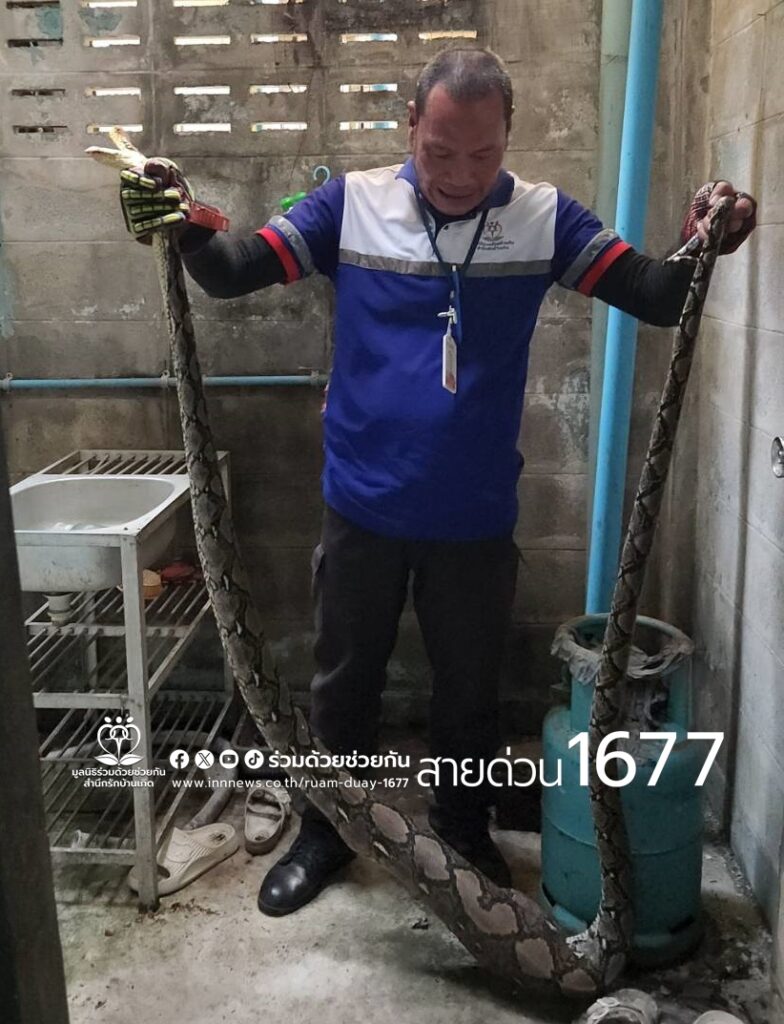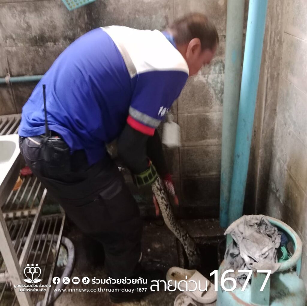 อาสาร่วมด้วยช่วยกัน รับแจ้งจากประชาชนขอความช่วยเหลือจับสัตว์เลื้อยคลาน อยู่หลังบ้านพัก ถนนเสรีไทย ซอย 63 แขวงรามอินทรา เขตคันนายาว กรุงเทพฯ