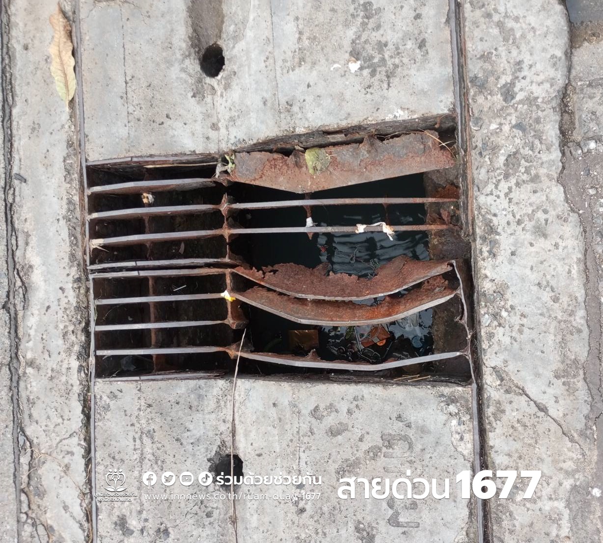 ฝาท่อระบายน้ำชำรุด หวั่นอันตราย แจ้งจนท.เร่งแก้ไข