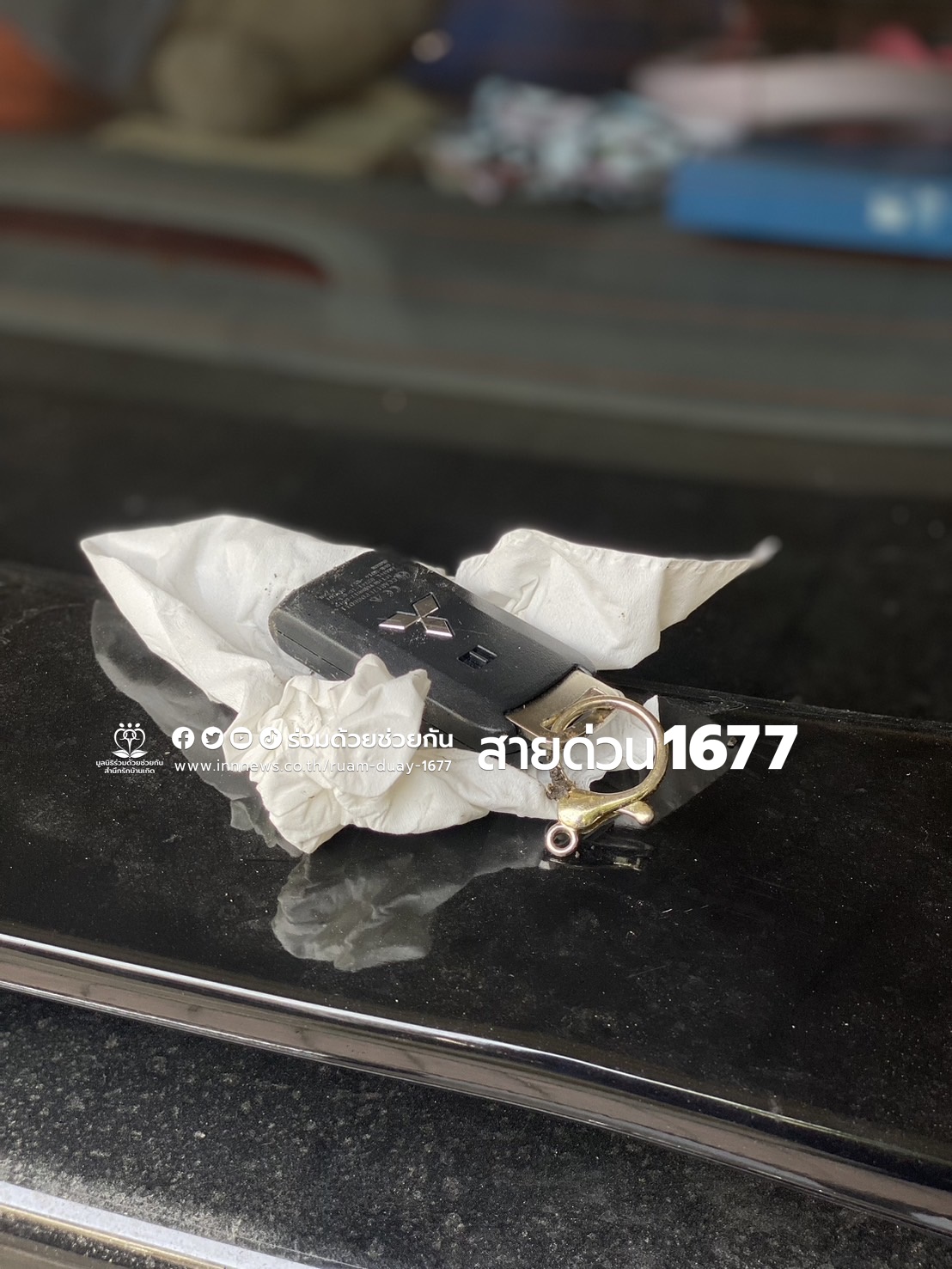 คุณเจนจิรา ทำแจ้งกุญแจรีโมทรถยนต์ตกท่อ ซอยอินทรามระ 33 ถนนสุทธิสารวินิจฉัย แขวงรัชดาภิเษก เขตดินแดง กรุงเทพฯ จุดเกิดเหตุลักษณะเป็นฝาท่อปูนสี่เหลี่ยม ไม่มีน้ำขังในท่อ มองไม่เห็นกุญแจ ต้องการอาสาให้การช่วยเหลือ ศูนย์สื่อสารร่วมด้วยช่วยกัน ประสาน อาสาร่วมด้วยซีบีห้วยขวาง 022 ไปให้การช่วยเหลือใช้ไม้ยาวคล้องดึงกุญแจขึ้นจากท่อระบายน้ำได้สำเร็จ