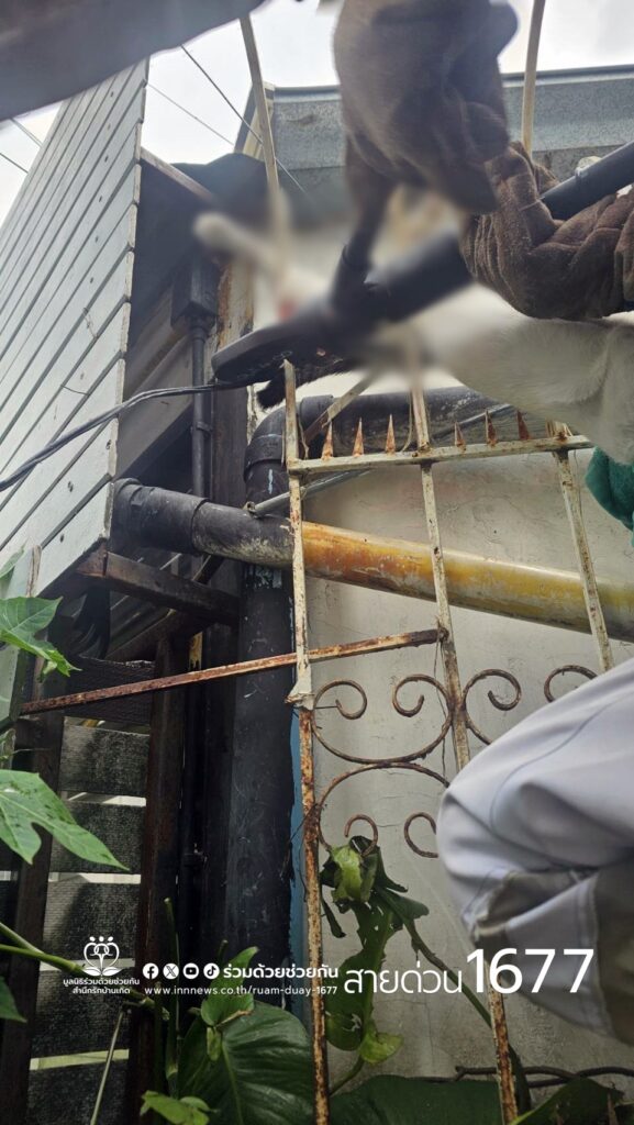 อาสาฯช่วยแมวถูกรั้วเหล็กเสียบ บริเวณซอยทองหล่อ 16 แขวงคลองตันเหนือ เขตวัฒนา กทม.