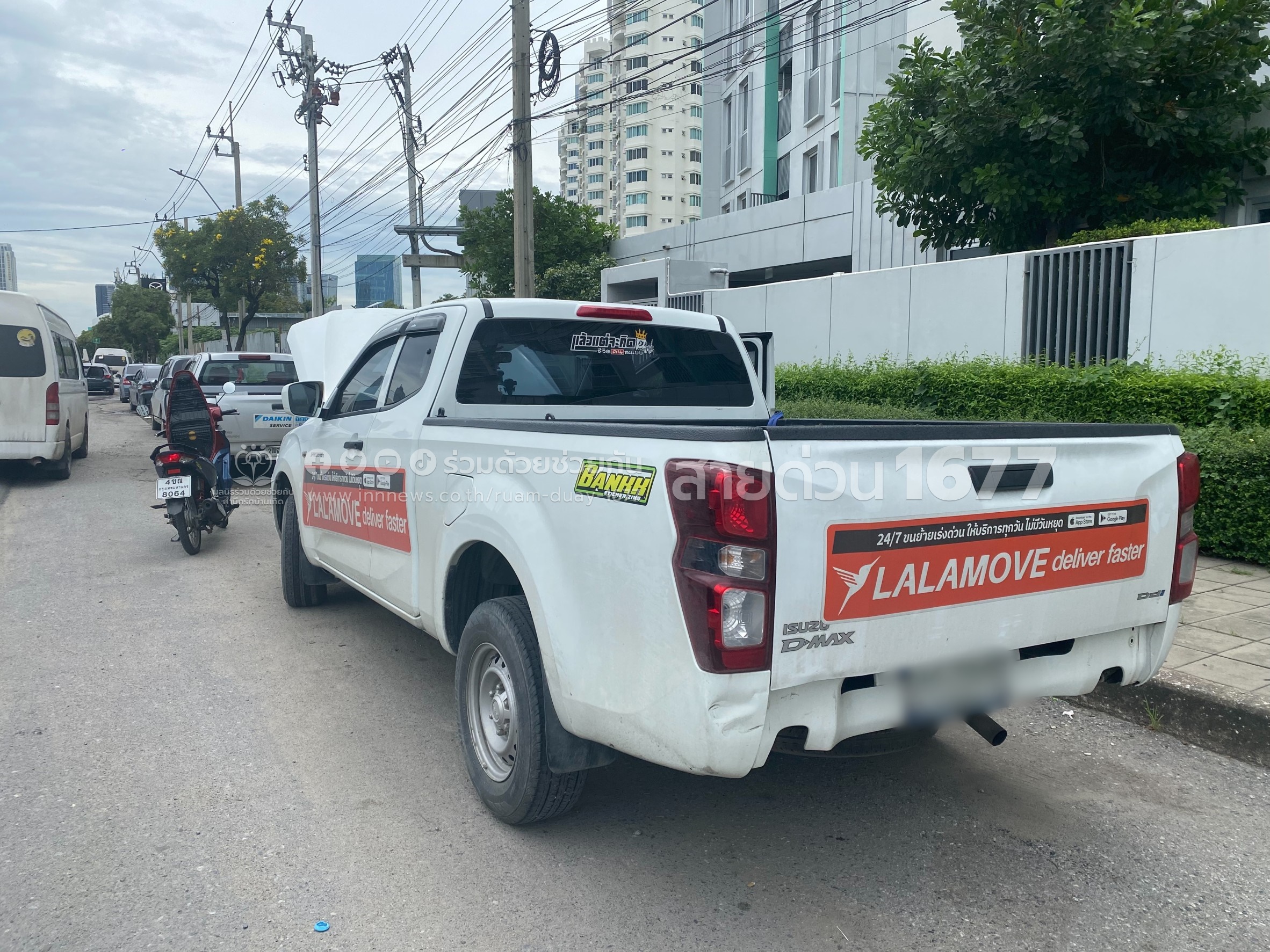 คุณสุลาวัลย์ ขอความช่วยเหลือรถกระบะแบตเตอรี่หมดสตาร์ทไม่ติด ไม่มีสายพ่วงแบตเตอรี่ จอดอยู่ใกล้ปั๊มน้ำมันบางจาก ถนนเทียมร่วมมิตร ด้านมุ่งหน้าพระราม 9