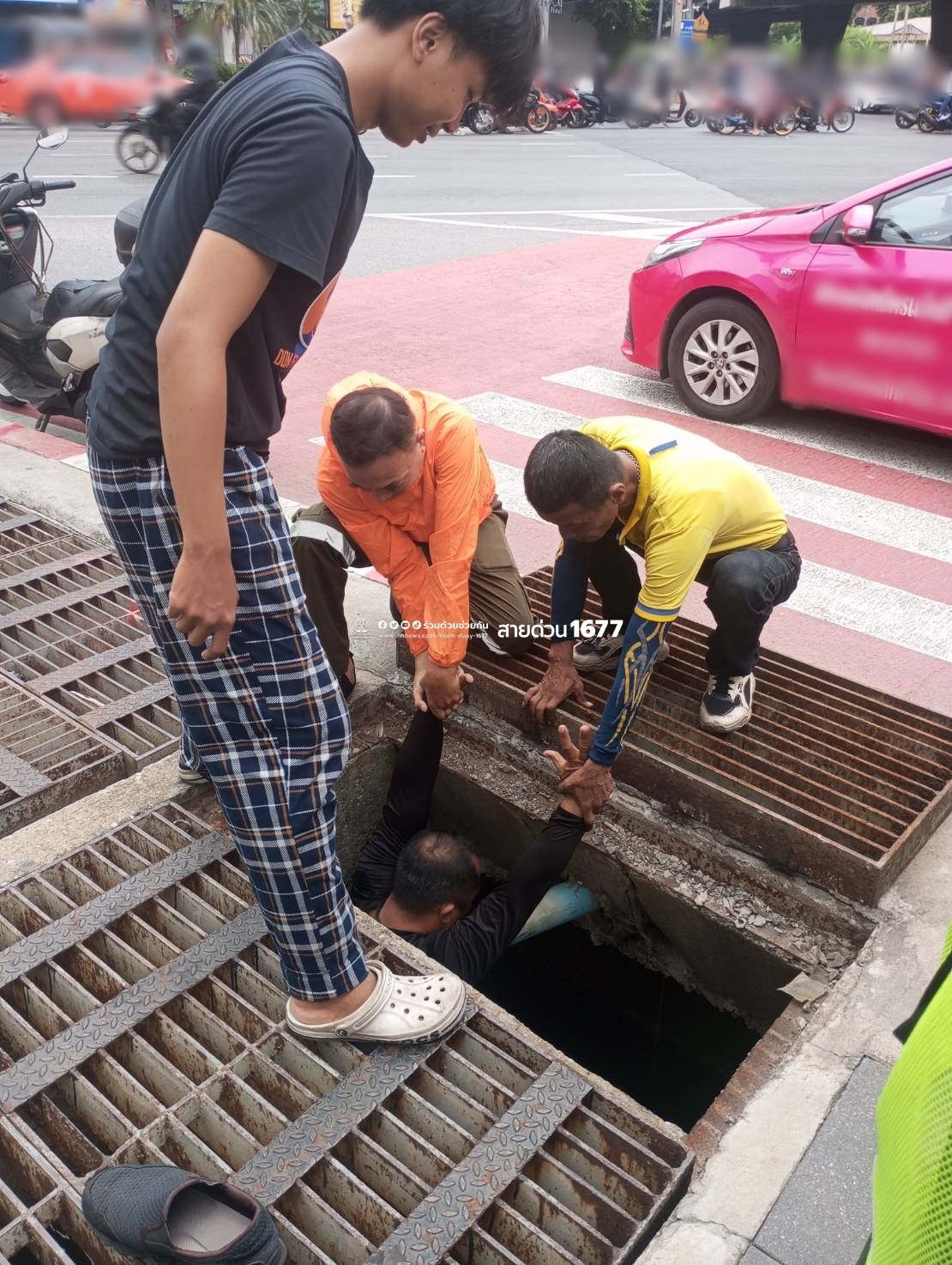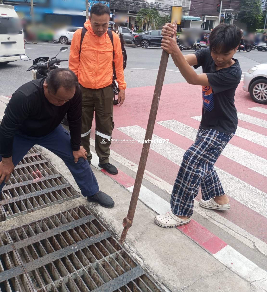 ชื่นชม โทรศัพท์มือถือตกท่อระบายน้ำ อาสาร่วมด้วยช่วยงัดฝาท่อลงงมค้นหา นำขั้นมาได้สำเร็จ