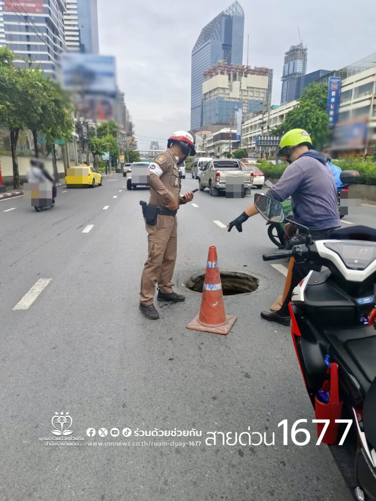 อาสาร่วมด้วยฯ แจ้งฝาท่อระบายน้ำทรุดตัว บนถนนพระราม 4 ประสานหน่วยงานซ่อมแซม