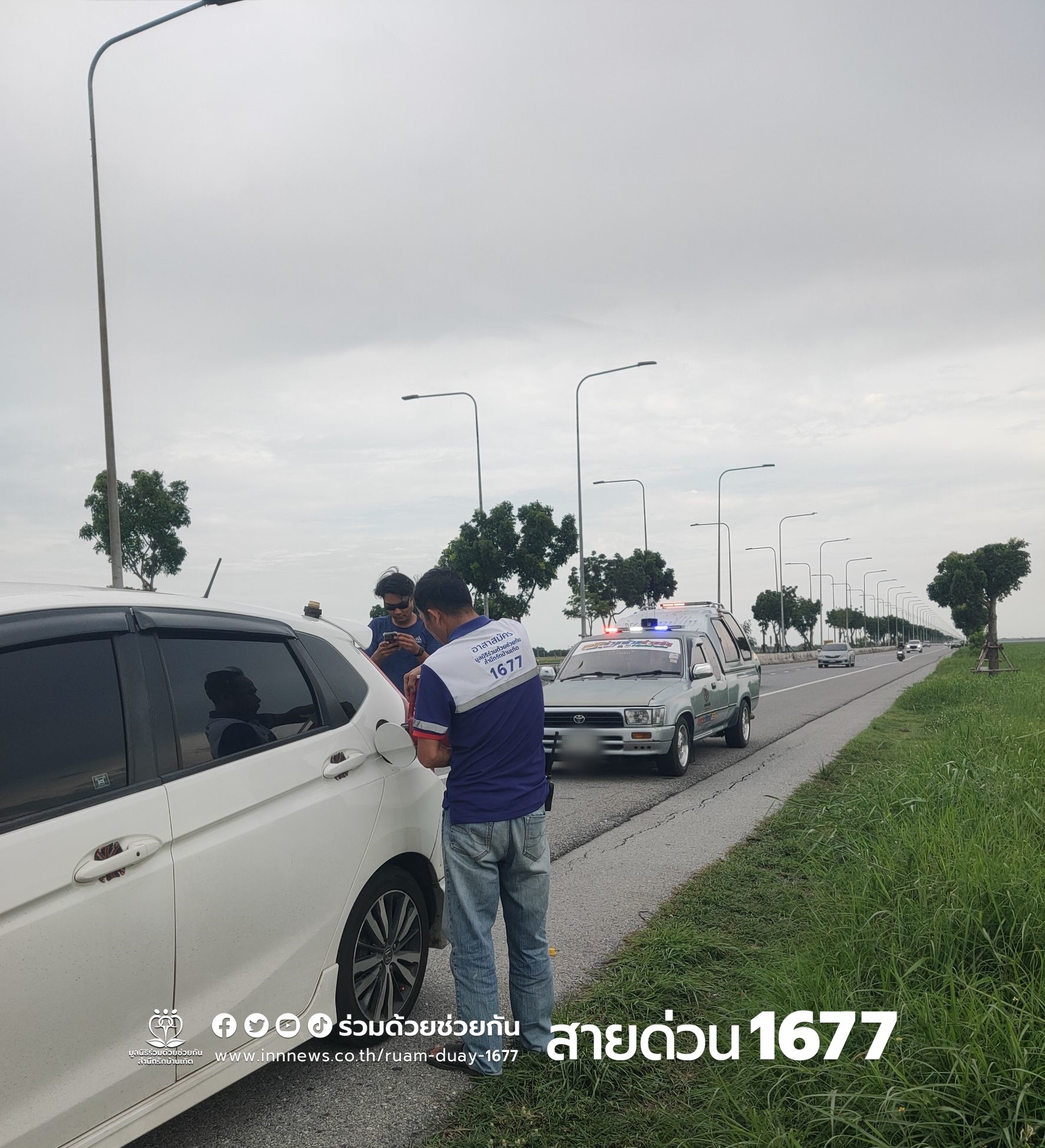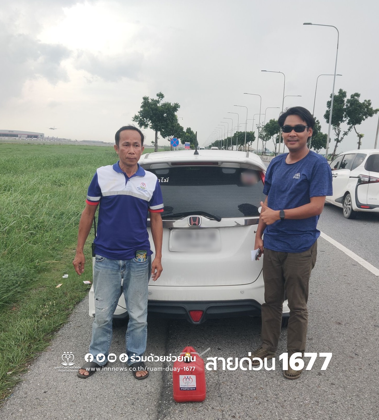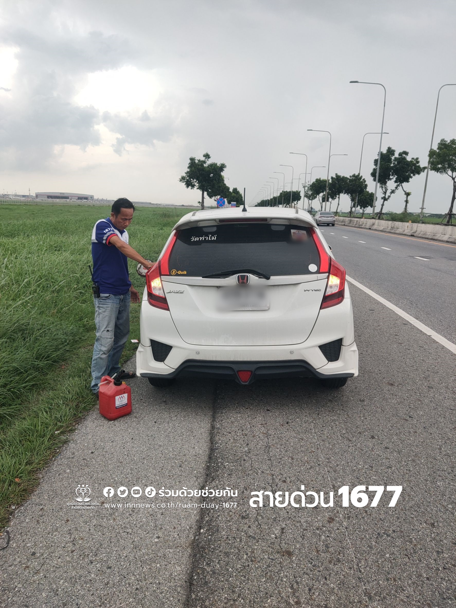 ตรวจสอบพบรถเก๋งฮอนด้า แจ๊ส สีขาว จอดอยู่ริมถนน ขับต่อไปไม่ได้ อาสาร่วมด้วยช่วยนำน้ำมันเชื้อเพลิงมาเติมให้ จนรถสตาร์ทติด สามารถเดินทางต่อไปได้ตามปกติ