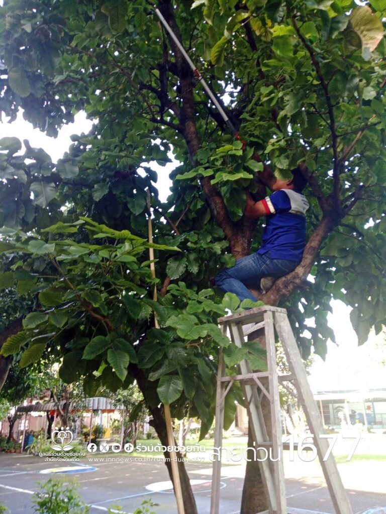 อาสาร่วมด้วยคุ้มภัย 037 , 038 ช่วยเหลือประชาชนจับงูเหลือมภายในโรงเรียน บริเวณถนนสวนสยาม แขวง/เขตคันนายาว กรุงเทพฯ ตรวจสอบ พบงูเหลือมบนต้นไม้ จำนวน 1 ตัว อาสาร่วมด้วยฯ ใช้บันไดปีนขึ้นต้นไม้ ดำเนินการใช้อุปกรณ์จับได้สำเร็จ พร้อมนำปล่อยธรรมชาติ