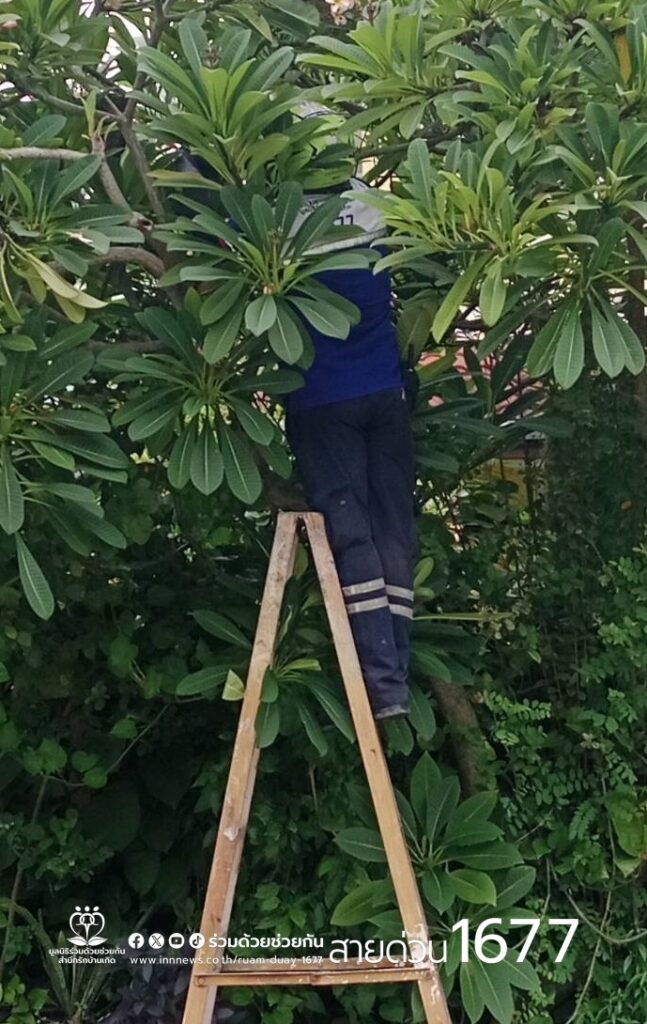 อาสาร่วมด้วยช่วยกัน รับแจ้งจากประชาชนขอความช่วยเหลือกำจัดสัตว์มีพิษอยู่บนต้นไม้ บริเวณใกล้บ้านพัก ถนนเลียบคลองสอง ซอย 21 แขวงบางชัน เขตคลองสามวา กรุงเทพฯ
