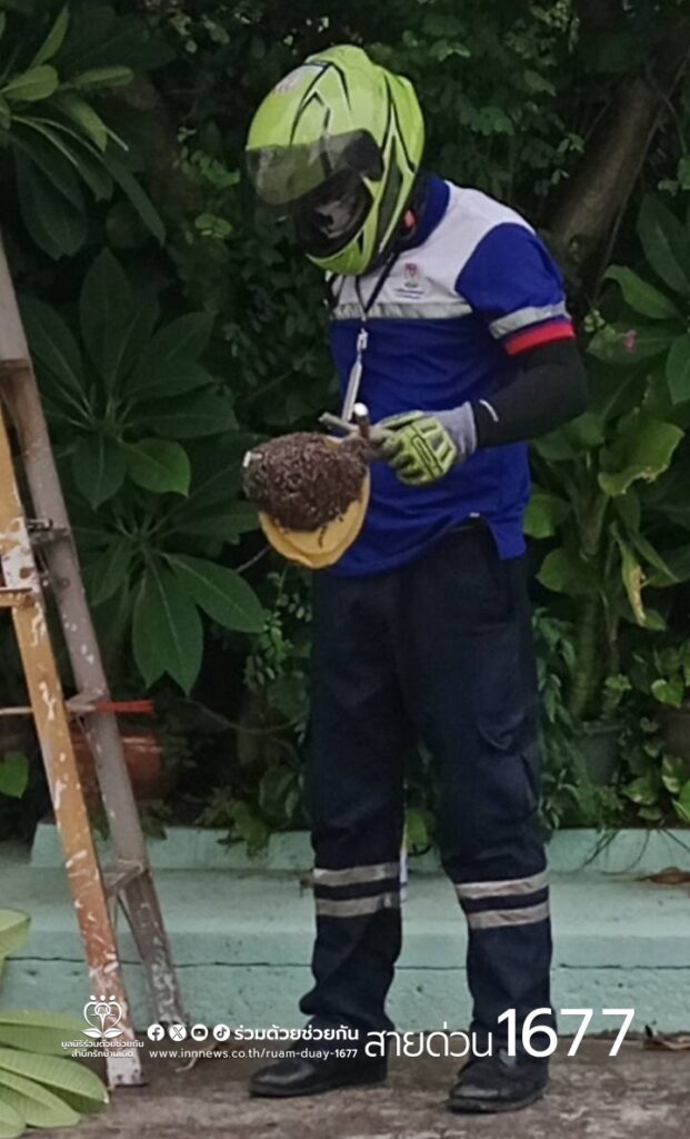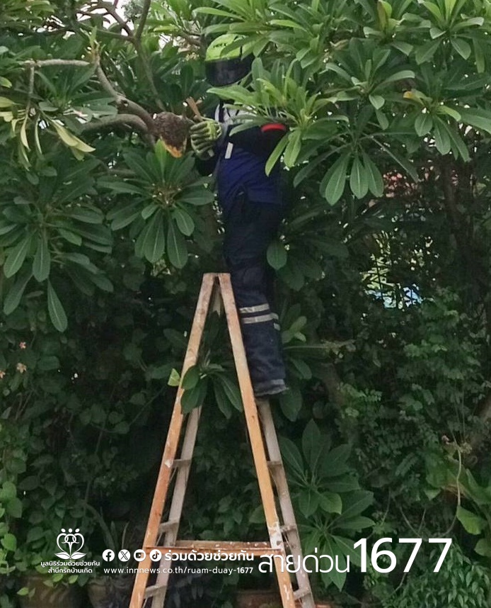 อาสาร่วมด้วยคุ้มภัย 006 ได้เข้าตรวจสอบ พบเป็นรังผึ้งจำนวน 1 รัง ทำรังอยู่บนต้นไม้ ความสูงประมาณ 4 เมตร อาสาร่วมด้วยได้นำอุปกรณ์เข้าช่วยเหลือ ทำการกำจัดรมควัน และเคลื่อนย้ายนำออกนอกพื้นที่ให้เป็นที่เรียบร้อย เพื่อความปลอดภัยของผู้พักอาศัย พื้นที่สน.คันนายาว