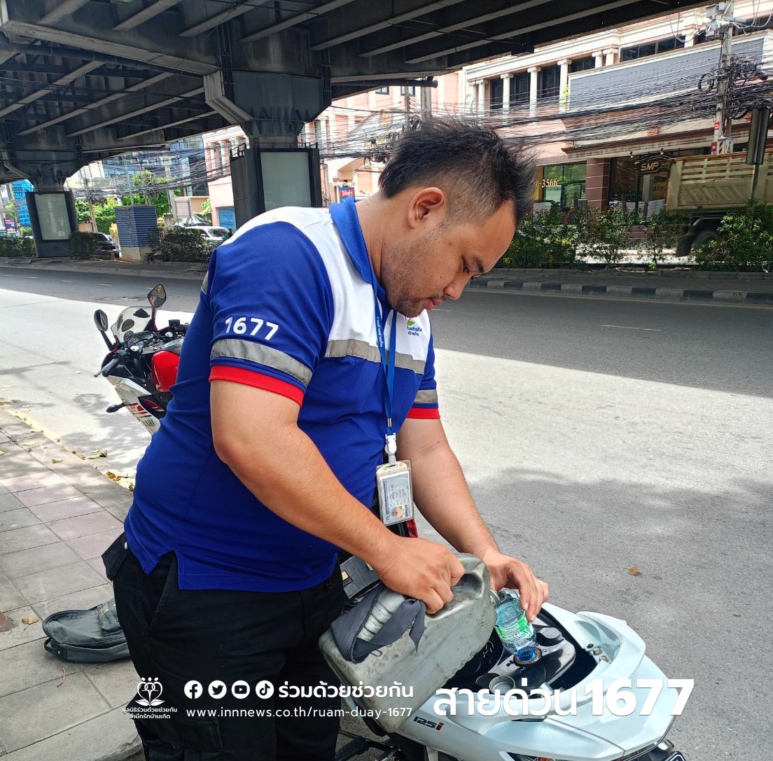 ตรวจสอบพบรถจักรยานยนต์น้ำมันหมด จอดอยู่ริมถนน อาสาจึงช่วยนำน้ำมันเชื้อเพลิงมาเติมให้ สามารถเดินทางต่อไปได้ตามปกติ