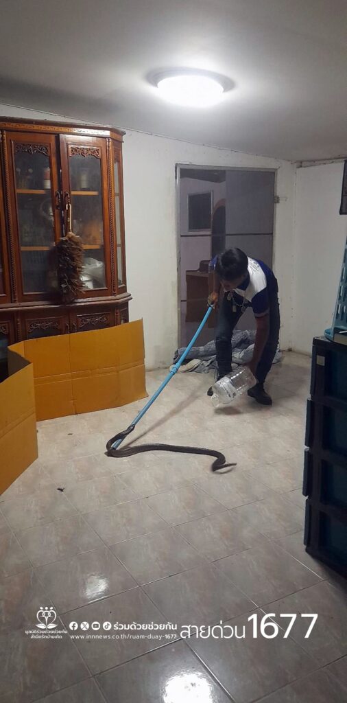 อาสาร่วมด้วยคุ้มภัย 026 ช่วยเหลือประชาชนจับงูเห่าเข้าบ้าน ซอยหนองระแหง 2 แยก 1 ถนนหนองระแหง แขวงสามวาตะวันตก เขตคลองสามวา กทม. พบงูเห่าอยู่ใต้ตู้เก็บของ จำนวน 1 ตัว อาสาร่วมด้วยคุ้มภัย 026 ดำเนินการใช้อุปกรณ์จับได้สำเร็จ พร้อมนำส่งหน่วยงานที่เกี่ยวข้อง เพื่อปล่อยธรรมชาติต่อไป