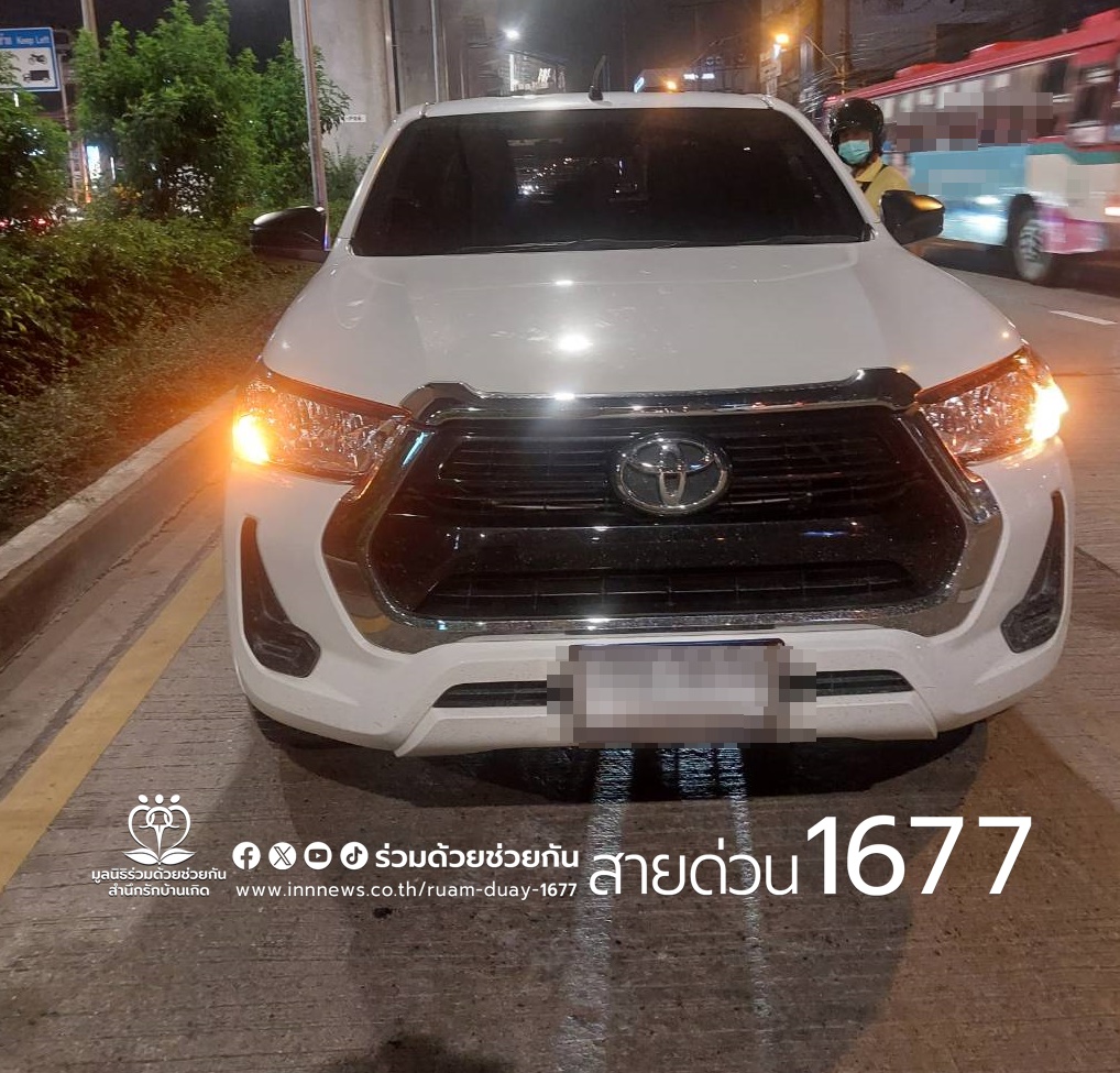 อาสาร่วมด้วยช่วยกัน แจ้งพบรถประชาชนจอดเสีย น้ำมันหมด จอดอยู่ที่ถนนศรีนครินทร์ ขาออก ก่อนถีงห้างซีคอนสแควร์ ศรีนครินทร์ แขวงหนองบอน เขตประเวศ กรุงเทพฯ เป็นรถกระบะโตโยต้า รีโว้ สีขาว