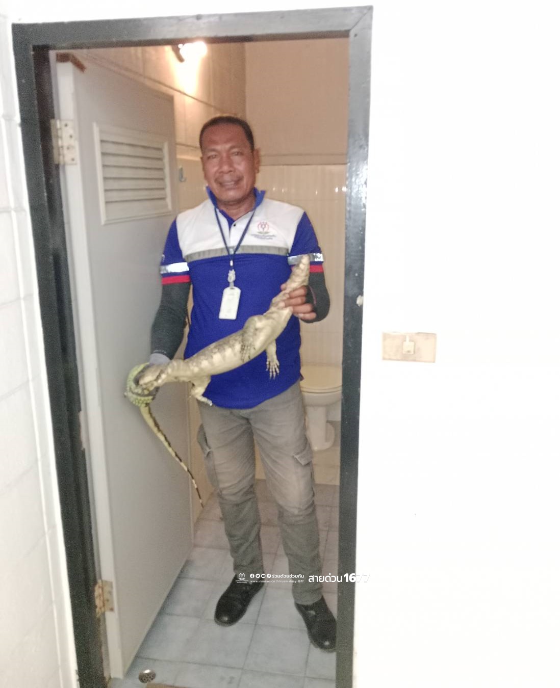 อาสาร่วมด้วยช่วยกันเดินทางเข้าไปตรวจสอบ พบตัวเงินตัวทองจำนวน 1 ตัว อยู่ในห้องน้ำ จึงช่วยจับออกมาได้สำเร็จ ก่อนนำไปปล่อยคืนสู่ธรรมชาติต่อไป