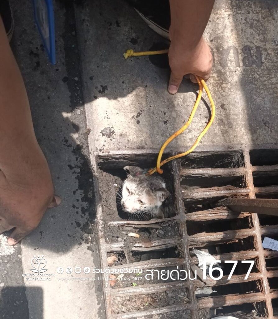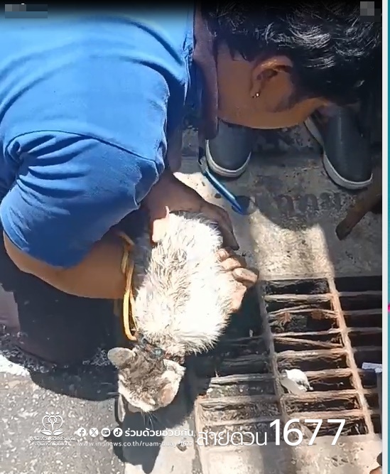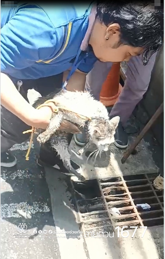 ช่วยชีวิต! แมวจอมซน เข้าไปติดในท่อระบายน้ำ ซอยเอกมัย 19