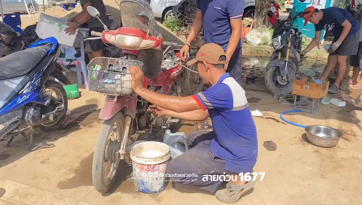 วันที่ 16 กันยายน 2567 อาสาร่วมด้วยช่วยกัน,มูลนิธิสยามเชียงราย พร้อมทีมจิตอาสา ตั้งศูนย์บริการรับซ่อมรถจักรยานยนต์ฟรี บริเวณห้าแยกพ่อขุนเม็งราย ต.เวียง อ.เมือง จ.เชียงราย ภายหลังระดับน้ำท่วมลดลง เพื่อช่วยเหลือบรรเทาความเดือดร้อนในเบื้องต้น