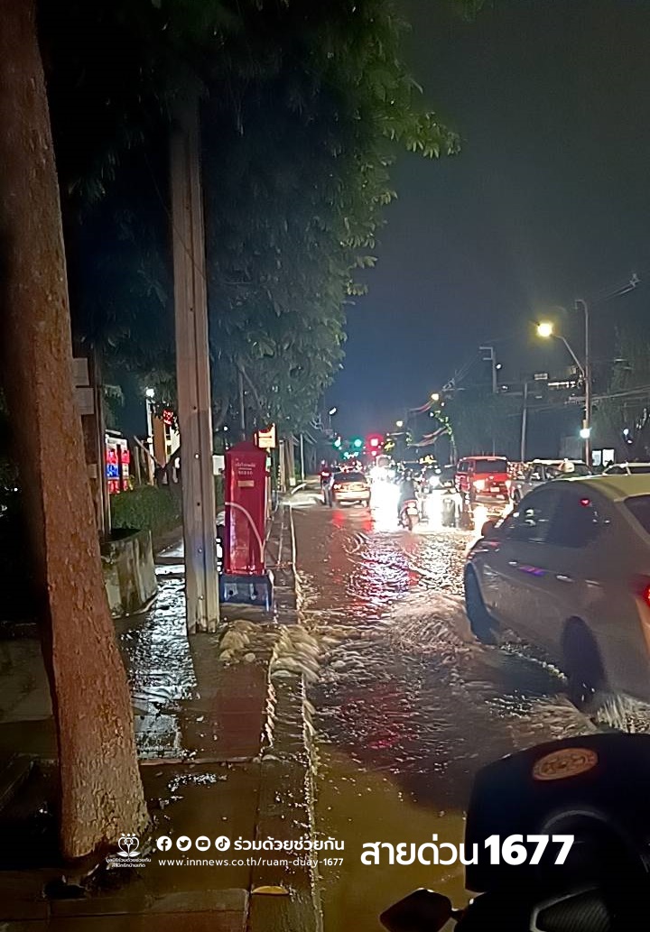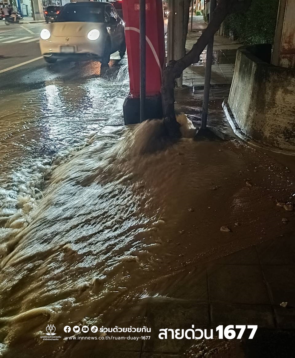 ท่อประปาแตก น้ำเอ่อไหลท่วมผิวจราจร แจ้งเจ้าหน้าที่เร่งซ่อม