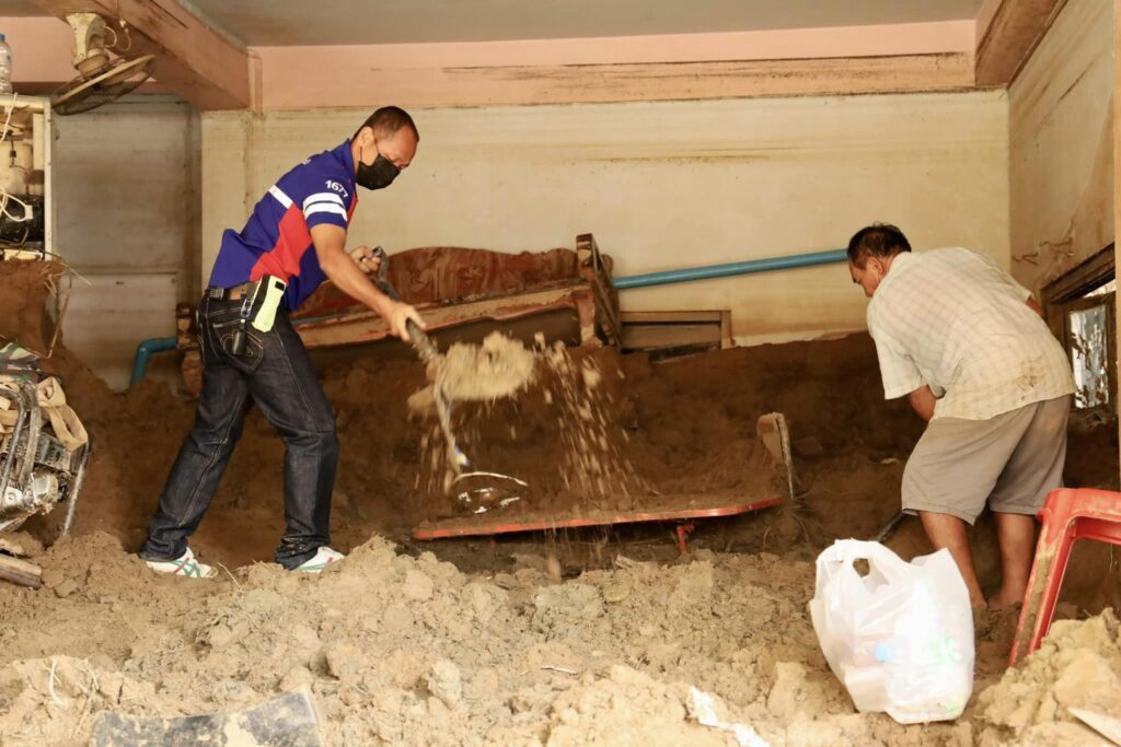 ขณะนี้ทางเจ้าหน้าที่หลายหน่วยงาน ระดมสรรพกำลังให้การช่วยเหลือ ช่วยกันทำความสะอาดถนน ขุดขนดินที่ทับถมออกจากตัวบ้าน และจิตอาสานำน้ำดื่ม อาหาร ถุงยังขีพ มาให้การข่วยเหลือประชาชน
