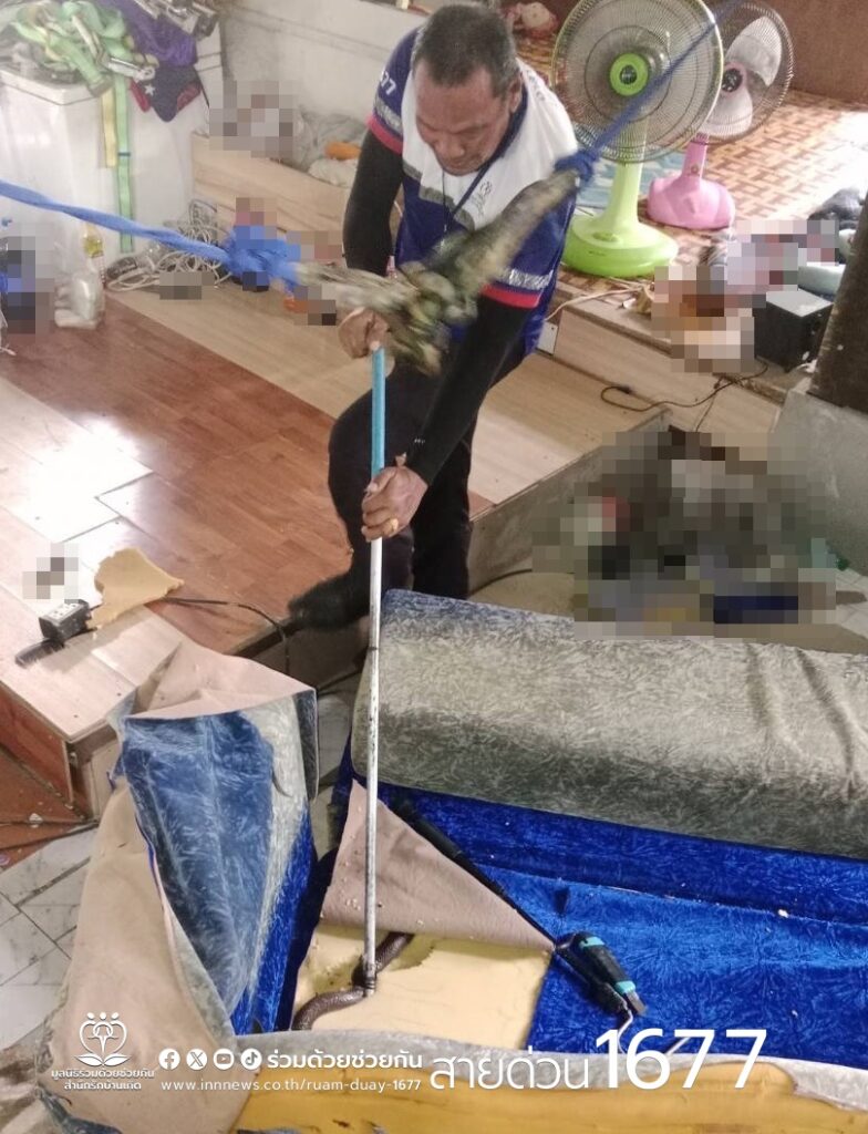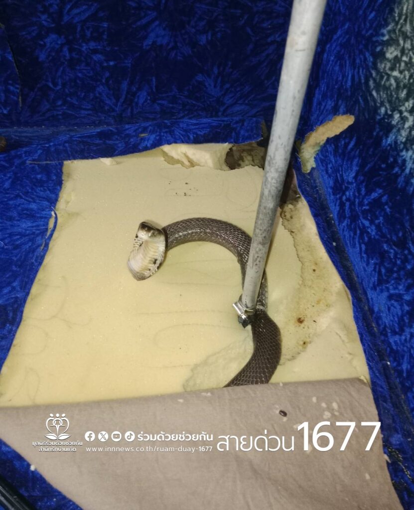 อาสาร่วมด้วยคุ้มภัย 006 ได้เข้าตรวจสอบพบเป็นงูเห่าจำนวน 1 ตัว ความยาวประมาณ 1 เมตร อยู่ในโซฟาภายในบ้านพัก แผ่แม่เบี้ยขู่ จึงใช้อุปกรณ์คล้องจับตัวงูดึงออกมาได้เป็นผลสำเร็จ และนำไปปล่อยคืนสู่ธรรมชาติห่างไกลบ้านเรือนประชาชนต่อไป พื้นที่สน.มีนบุรี