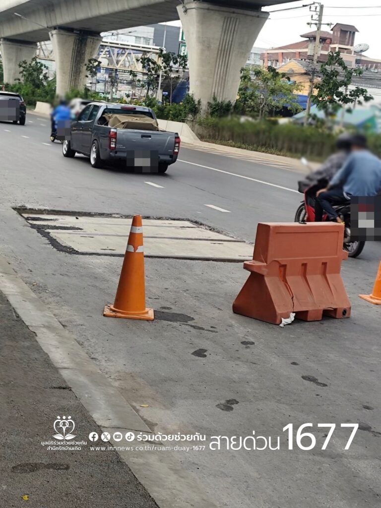 เตือนระวัง! ฝาท่อบนถนนทรุดตัว ซอยรามคำแหง 120