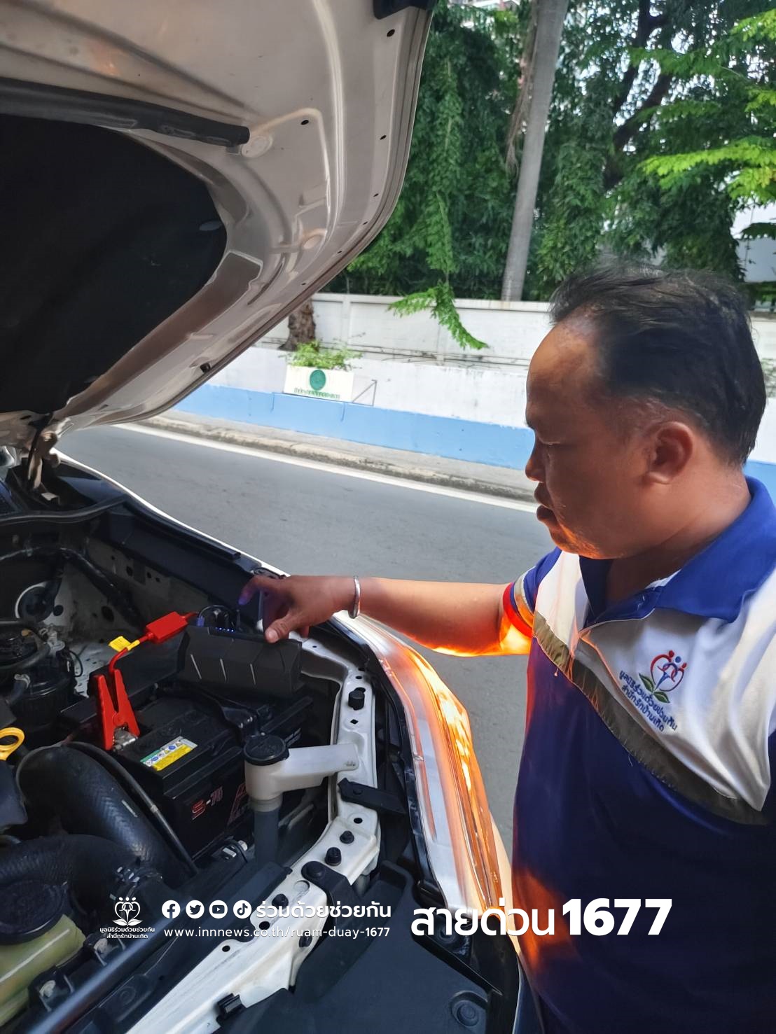 ประชาชนรถสตาร์ทไม่ติด อาสาร่วมด้วยช่วยพ่วงแบตเตอรี่ให้ สามารถเดินทางต่อไปได้