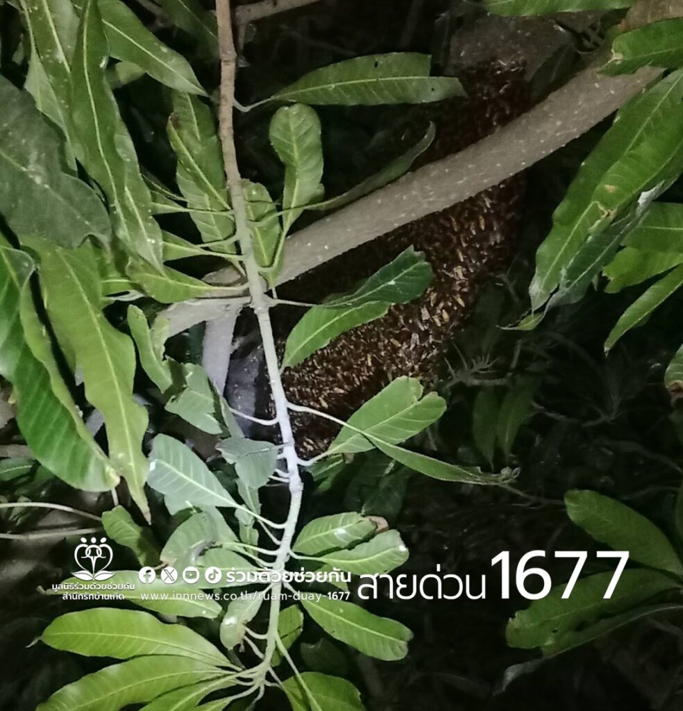 อาสาร่วมด้วยคุ้มภัย 006,038 ได้เข้าตรวจสอบ พบรังผึ้งหลวงจำนวน 1 รัง ทำรังอยู่บนต้นมะม่วงใกล้ชายคาบ้าน ความสูงประมาณ 4 เมตร เเละก่อนหน้าได้บินลงมาต่อยคนในบ้านได้รับบาดเจ็บ อาสาร่วมด้วยได้นำอุปกรณ์เข้าช่วยเหลือ ทำการกำจัดรมควัน และเคลื่อนย้ายนำออกนอกพื้นที่ให้เป็นที่เรียบร้อย เพื่อความปลอดภัยของผู้พักอาศัย พื้นที่สน.คันนายาว