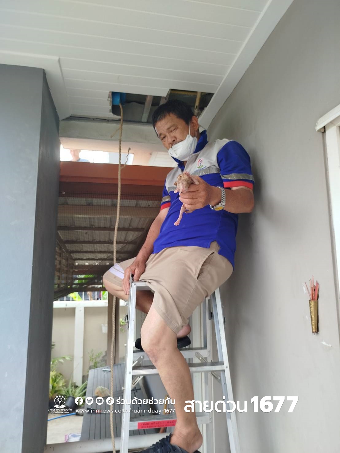 อาสาร่วมด้วยช่วยกันจึงเดินทางเข้าไปตรวจสอบ พบลูกแมว 2 ตัว ติดอยู่ในท่อระบายน้ำในบ้าน อาสาจึงช่วยกันนำลูกแมวออกมาได้สำเร็จ และปลอดภัย ก่อนมอบให้พลเมืองดีรับไปเลี้ยงดูแลในเบื้องต้นต่อไป