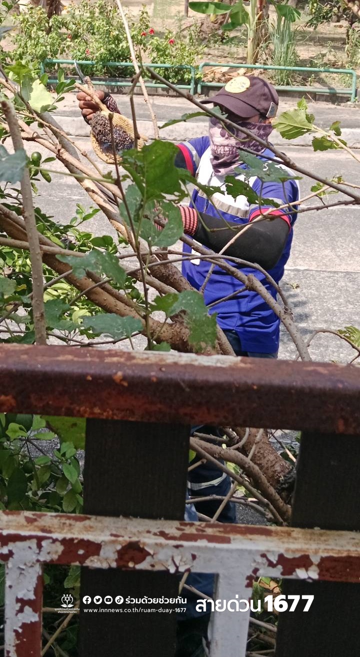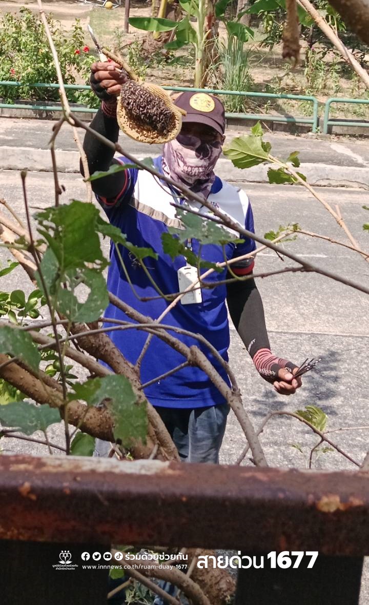 อาสาร่วมด้วยช่วยกันจึงเดินทางเข้าไปตรวจสอบ พบผึ้งทำรังบนไม้หน้าบ้าน อาสาจึงจุดไฟรมควันไล่ผึ้งออกจากรัง ก่อนเคลื่อนย้ายออกจากพื้นที่เป็นที่เรียบร้อย