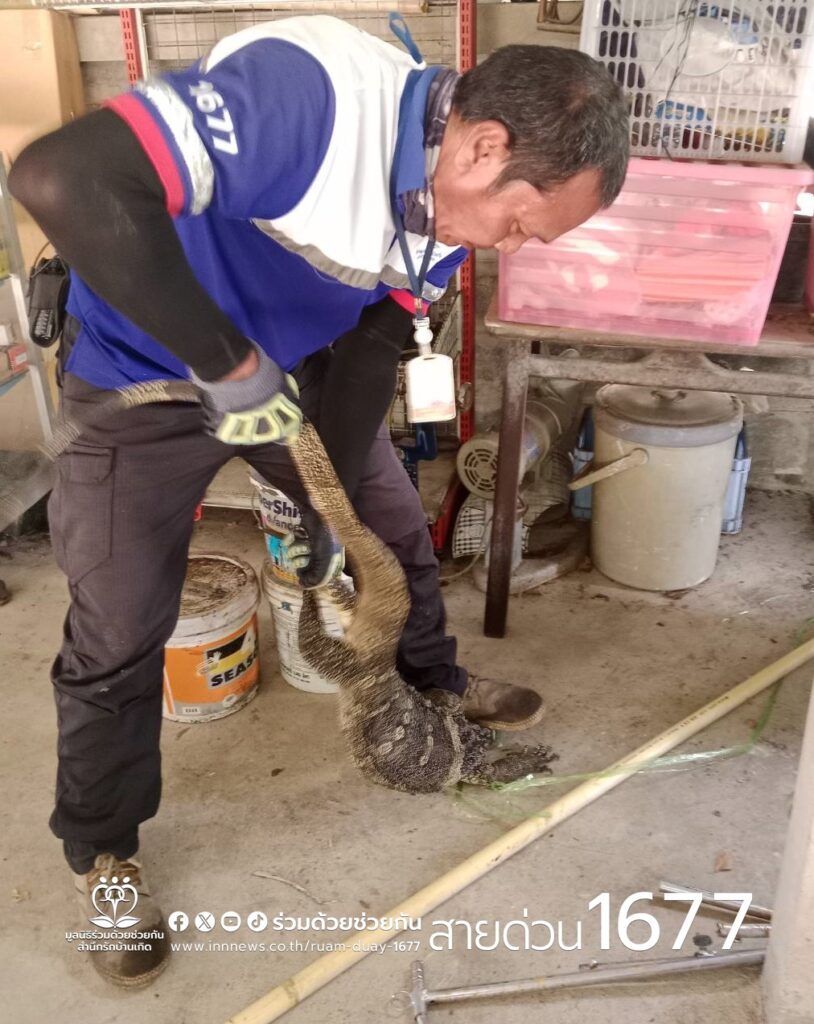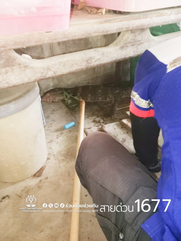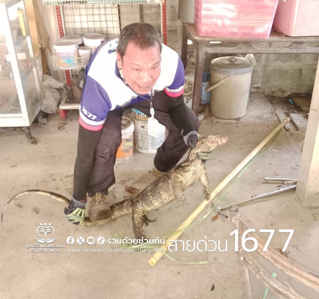 อาสาร่วมด้วยคุ้มภัย 006 ได้เข้าตรวจสอบพบเป็นตัวเงินตัวทองจำนวน 1 ตัว หลบซ่อนตัวอยู่ข้างกำแพงรั้วหน้าบ้านพัก จึงได้นำอุปกรณ์เข้าช่วยเหลือ ทำการจับดึงตัวออกมาได้เป็นผลสำเร็จ และนำไปปล่อยคืนสู่ธรรมชาติเป็นที่เรียบร้อย พื้นที่สน.โคกคราม