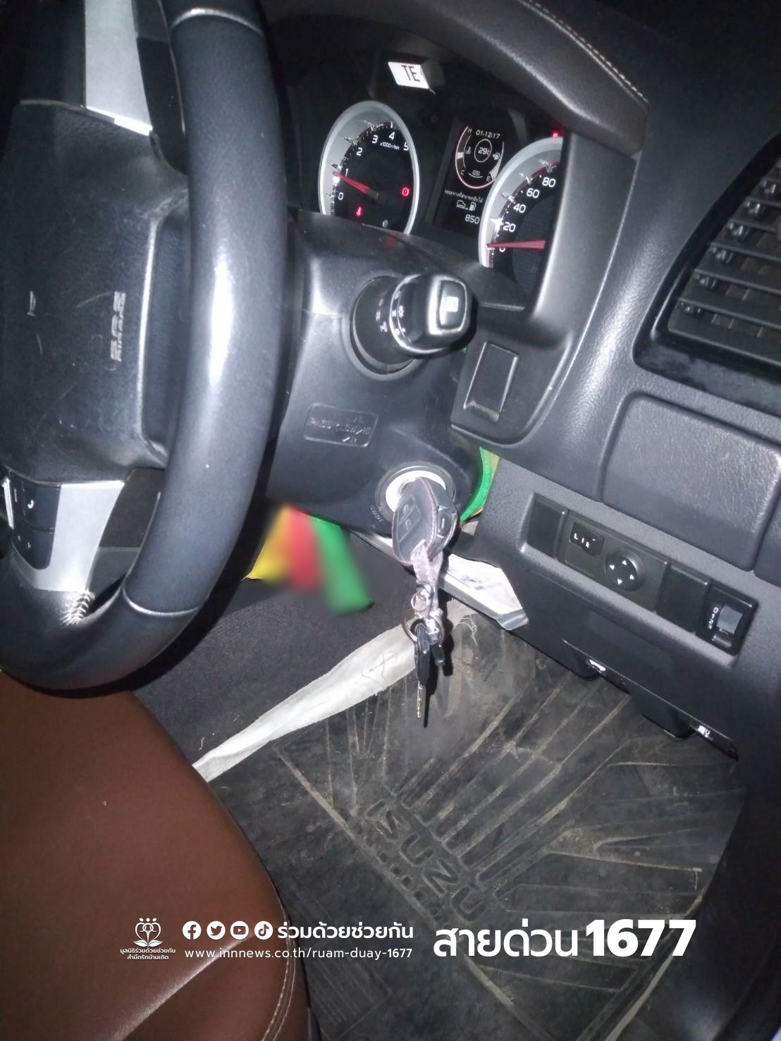 อาสาร่วมด้วยช่วยกันเดินทางเข้าไปตรวจสอบช่วยหลือ พบว่าลืมกุญแจไว้ในรถกระบะอีซูซู สีเทา จึงนำอุปกรณ์เฉพาะทางช่วยเปิดประตูได้สำเร็จ นำกุญแจออกจากรถได้เรียบร้อย