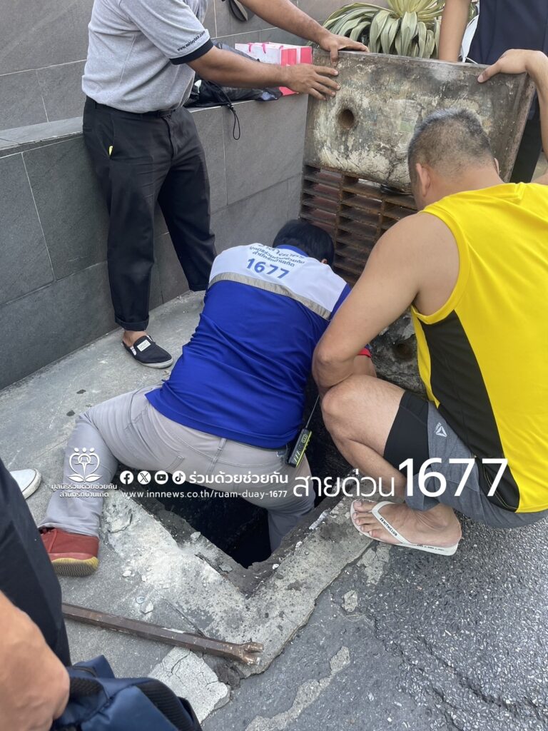 อาสาร่วมด้วยช่วยกัน ช่วยค้นหาโทรศัพท์ตกท่อระบายน้ำ ซอยทองหล่อท 11 ถนนสุขุมวิท 55
