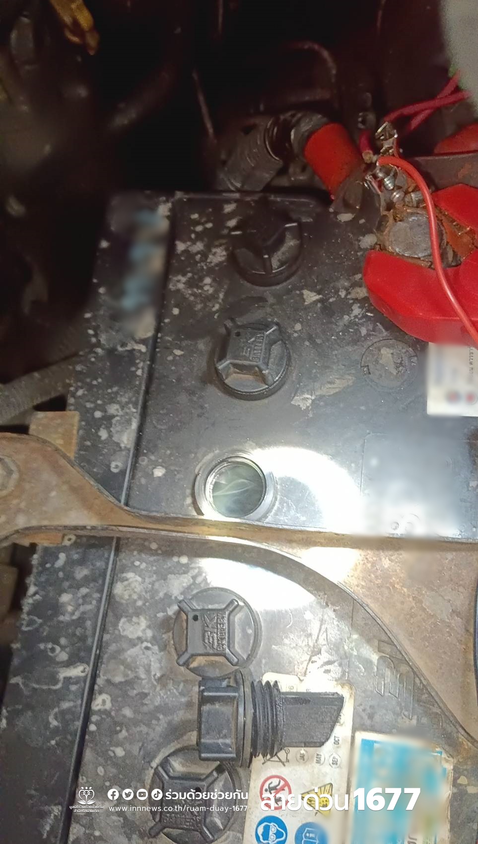 ตรวจสอบพบว่ารถสตาร์ทไม่ติด สาเหตุเกิดจากแบตเตอรี่และน้ำกลั่นหมด อาสาจึงหาซื้อน้ำกลั่นมาเติมให้ และดำเนินการจัมพ์สตาร์ท จนรถสตาร์ทติด สามารถเดินทางต่อไปได้ พื้นที่ สน.บางโพงพาง