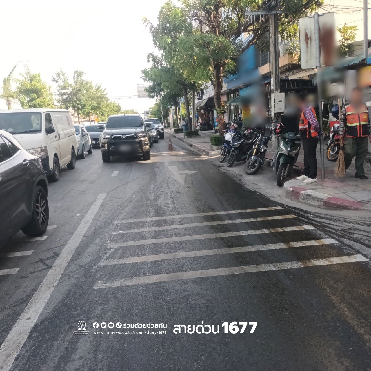 หวั่นอันตราย คราบน้ำมันหล่นบนถนน แจ้งเจ้าหน้าที่เร่งแก้ไข