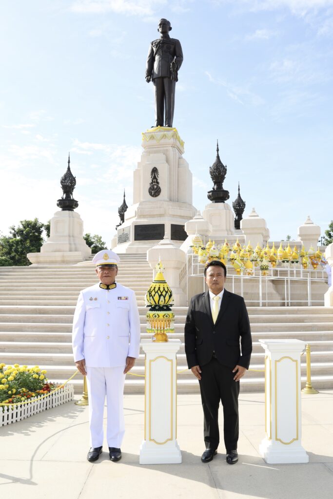 คุณอภิวัฒน์ รัตนนาคินทร์ ผู้อำนวยการกลุ่มงานร่วมด้วยช่วยกัน เป็นตัวแทนกลุ่มบริษัทเบญจจินดา (BCG) ร่วมพิธีวางพานพุ่มดอกไม้ ถวายสักการะพระบรมรูปในหลวง ร.9 เนื่องในวันคล้ายวันพระราชสมภพ พระบาทสมเด็จพระบรมชนกาธิเบศร มหาภูมิพลอดุลยเดชมหาราช บรมนาถบพิตร วันชาติ และวันพ่อแห่งชาติ 5 ธันวาคม พ.ศ.2567 ณ อุทยานเฉลิมพระเกียรติฯ เขตดุสิต กรุงเทพมหานคร