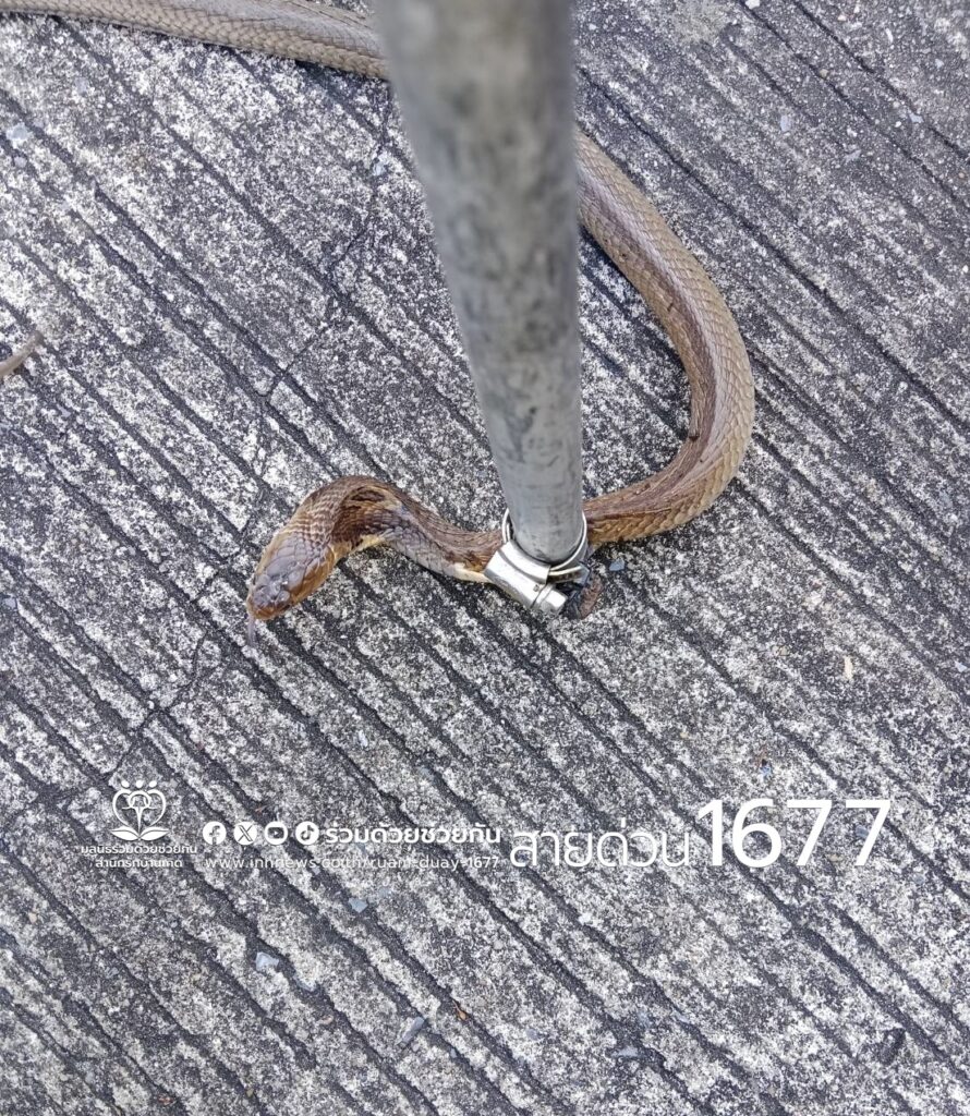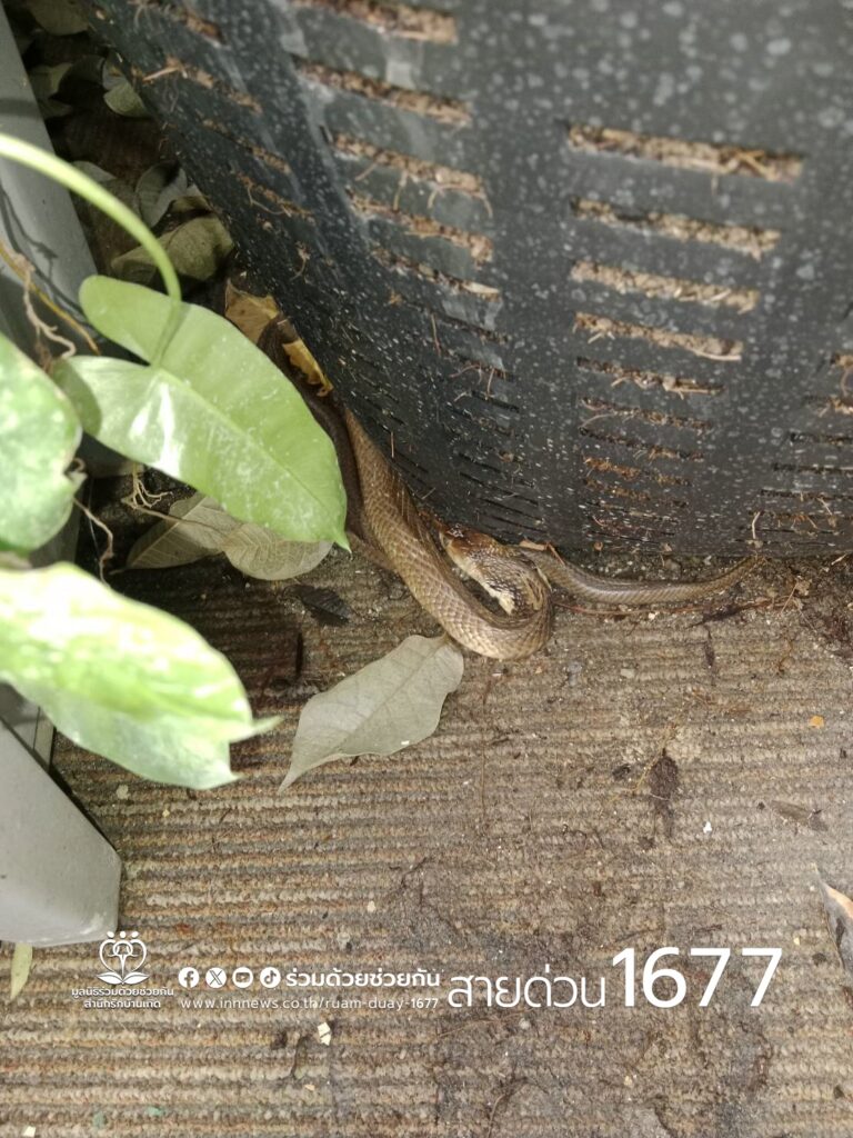เจ้าของบ้านช็อก! งูเห่าอยู่ข้างกระถางต้นไม้หน้าบ้าน ร้องอาสาร่วมด้วยช่วยเหลือจับไปปล่อยป่า