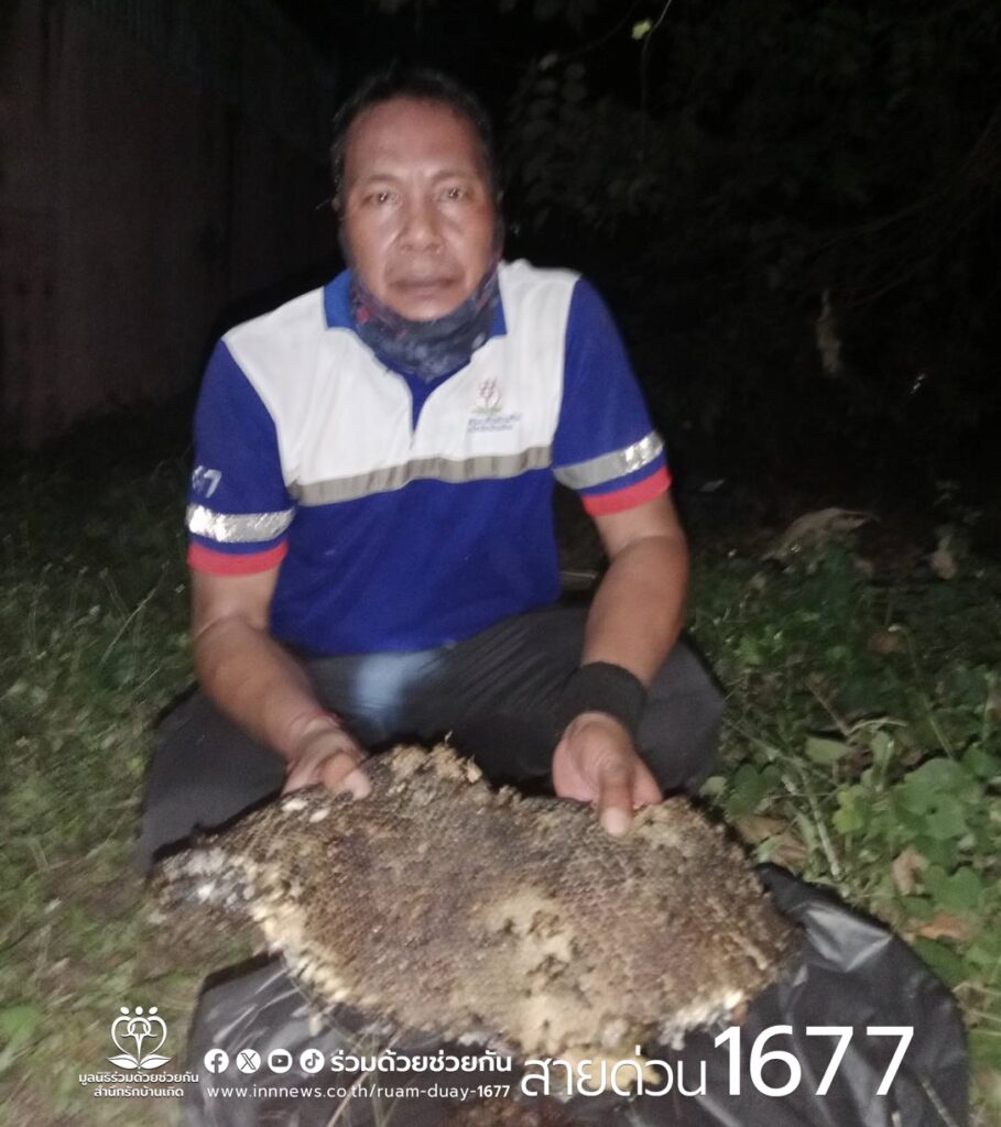 อาสาร่วมด้วยคุ้มภัย 006,038 ได้เข้าตรวจสอบ พบเป็นรังผึ้งหลวงจำนวน 1 รัง ทำรังอยู่บนต้นไม้ข้างที่พักอาศัย ความสูงประมาณ 4 เมตร อาสาร่วมด้วยได้นำอุปกรณ์เข้าช่วยเหลือ ทำการกำจัดรมควัน และเคลื่อนย้ายนำออกนอกพื้นที่ให้เป็นที่เรียบร้อย เพื่อความปลอดภัยของผู้พักอาศัย พื้นที่สน.นิมิตใหม่