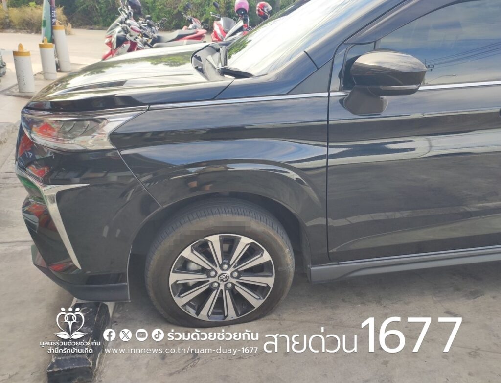 อาสาร่วมด้วยช่วยกัน รับแจ้งจากประชาชนขอความช่วยเหลือรถจอดเสีย ล้อยางหน้าข้างซ้ายรั่ว เป็นรถยนต์โตโยต้า สีดำ จอดอยู่ถนนกรุงเทพกรีฑา ซอย 15 แขวงทับช้าง เขตสะพานสูง กรุงเทพฯ