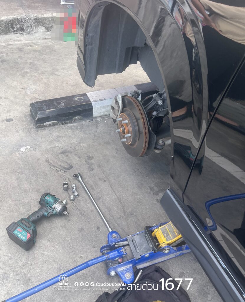 อาสาร่วมด้วยเฉลิมพระเกียรติ 15 ได้นำอุปกรณ์เข้าช่วยเหลือ ทำการปรับเปลี่ยนล้อยางอะไหล่ให้เป็นผลสำเร็จ รถขับเคลื่อนต่อไปได้ พื้นที่สน.ประเวศ