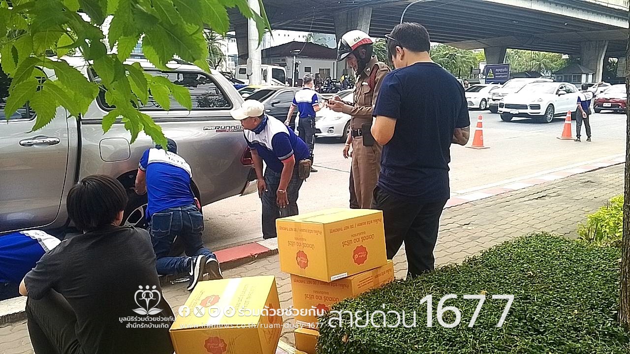 อาสาร่วมด้วยฯ ช่วยเหลือประชาชน รถกระบะยางแตก จอดอยู่ใกล้แยกประชาธรรม ถนนประดิษฐ์มนูธรรม ขาเข้า ดำเนินการถอดล้อ และเปลี่ยนยางอะไหล่ให้เรียบร้อยแล้ว พร้อมช่วยอำนวยการจราจรในที่เกิดเหตุ